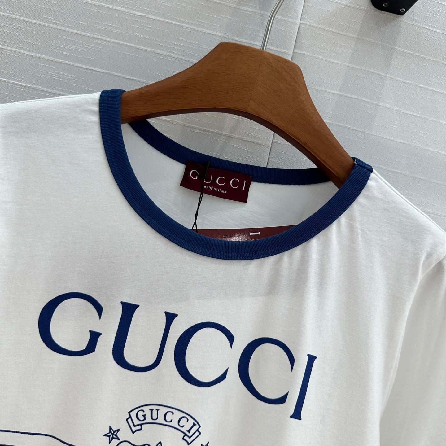 Gucci 25 Blue Letter Short-sleeved T-shirt White Cotton