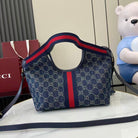 Gucci 25 Giglio 25cm Bag Blue Denim Leather 292387