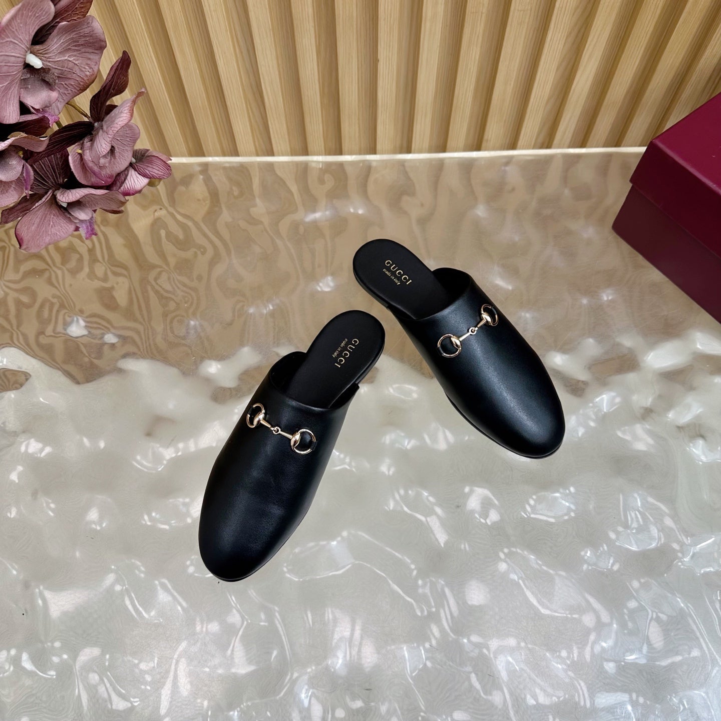 Gucci 25 Horsebit Mule Black Gold Cowhide 436323