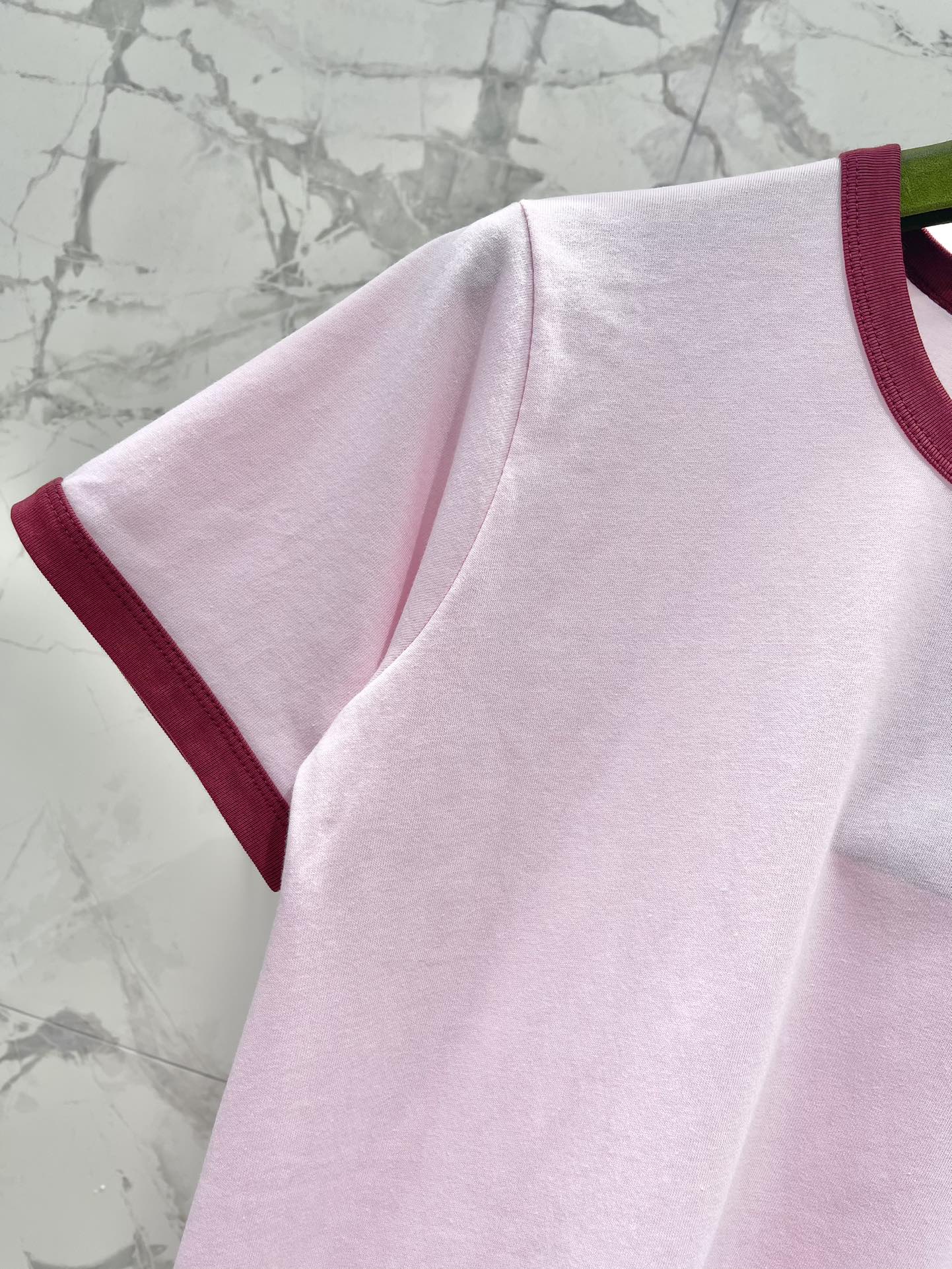Gucci Embroidered Short Sleeves T-shirt Pink Cotton