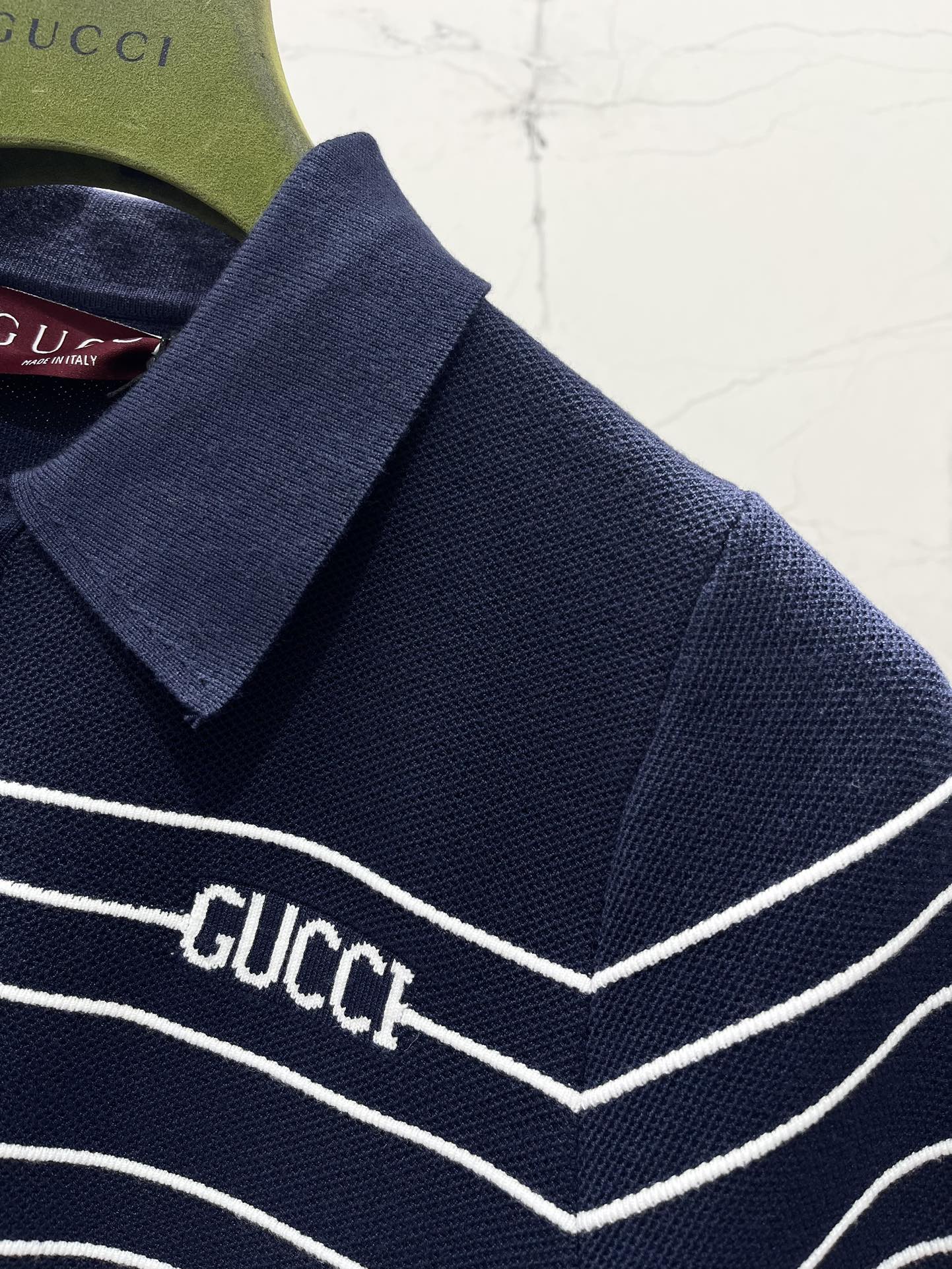 Gucci Polo Shirt Dress Blue White Wool