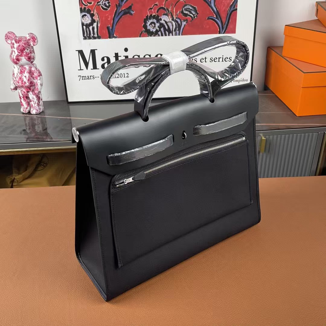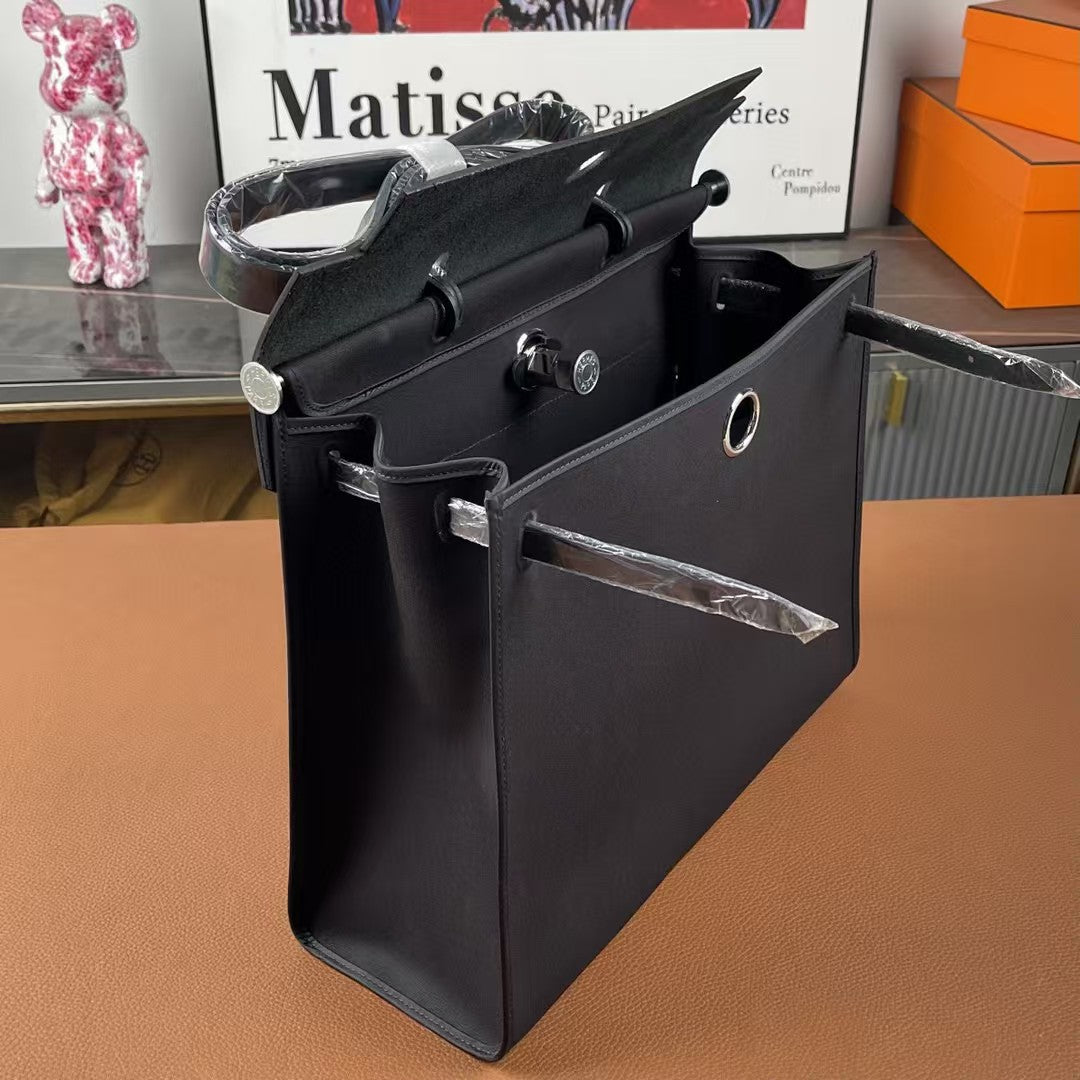 Herbag 39 Toile Black Canvas Black Cowhide Leather