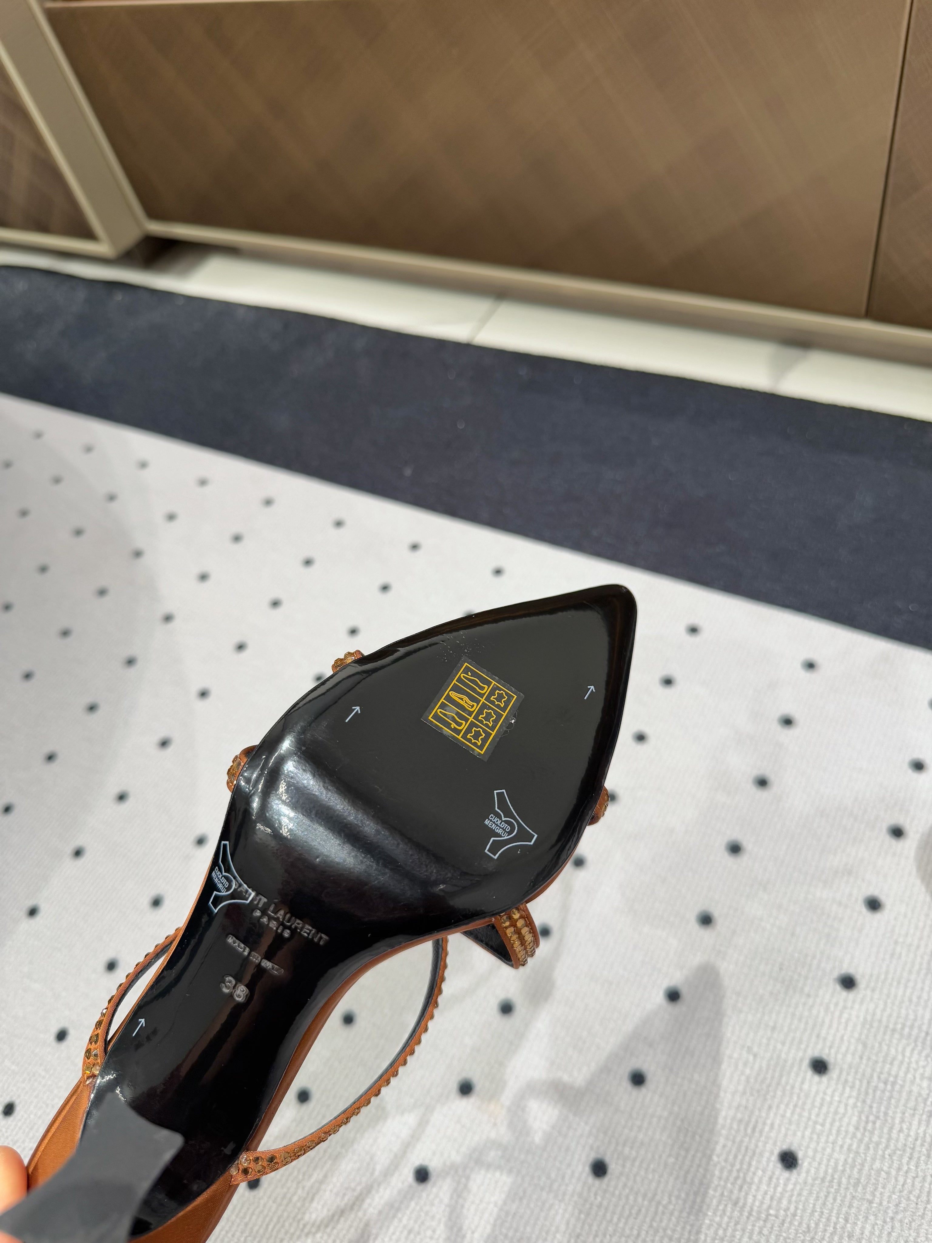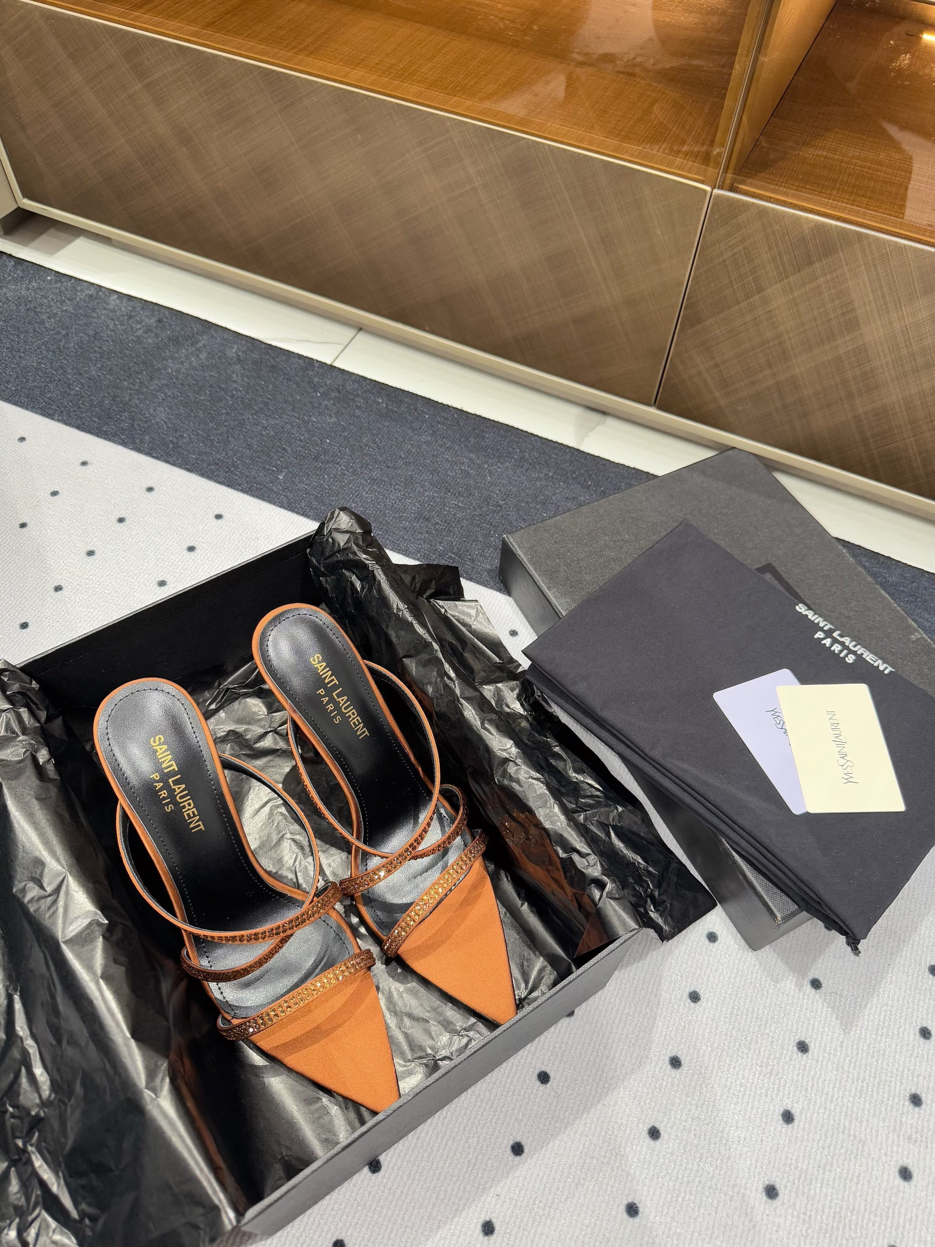 HIGH CRYSTAL STRAP SANDALS IN SANDSTONE SILK