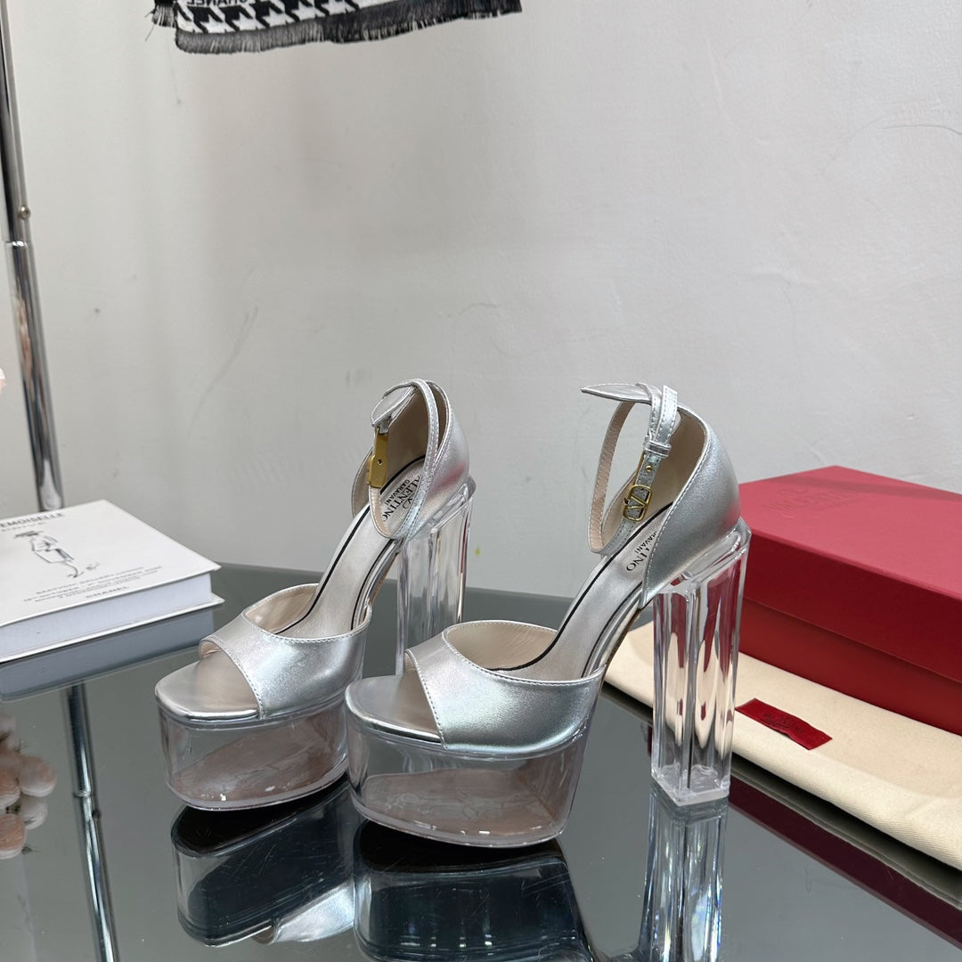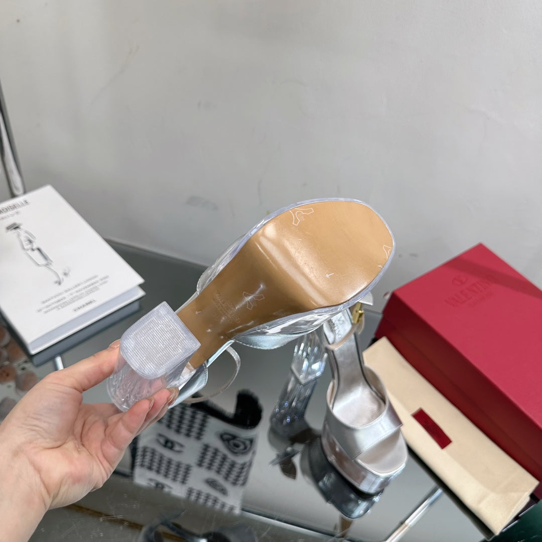 HIGH SANDAL 14CM IN SILVER CALFSKIN AND TRANSPARENT PVC