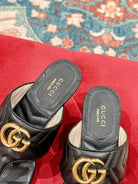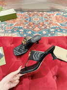 HIGH THONG MULE 55MM IN BLACK CALFSKIN WITH GOLD HARDWARE