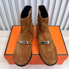 HM 25 Kelly Buckle Ankle Boots Rich Brown Silver Suede 513082