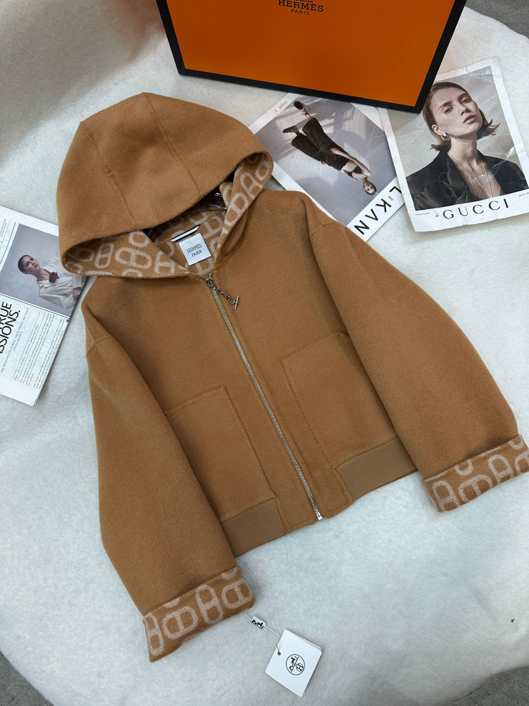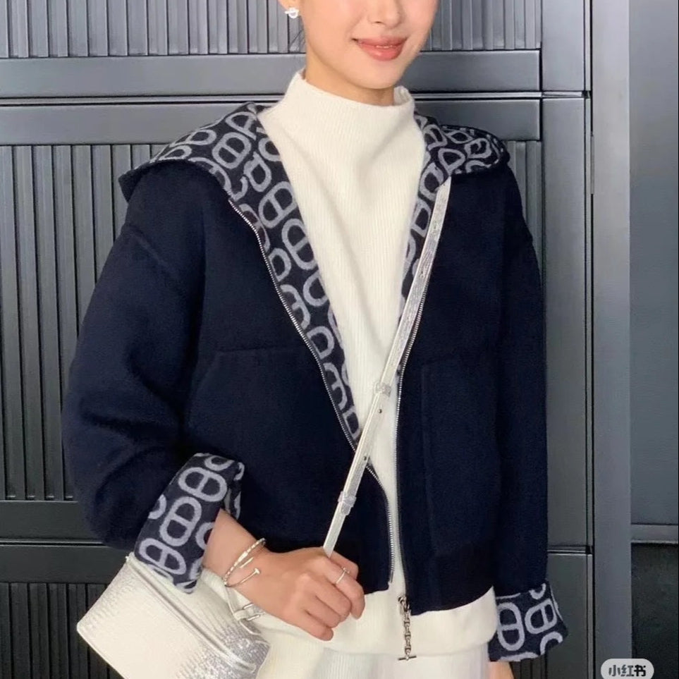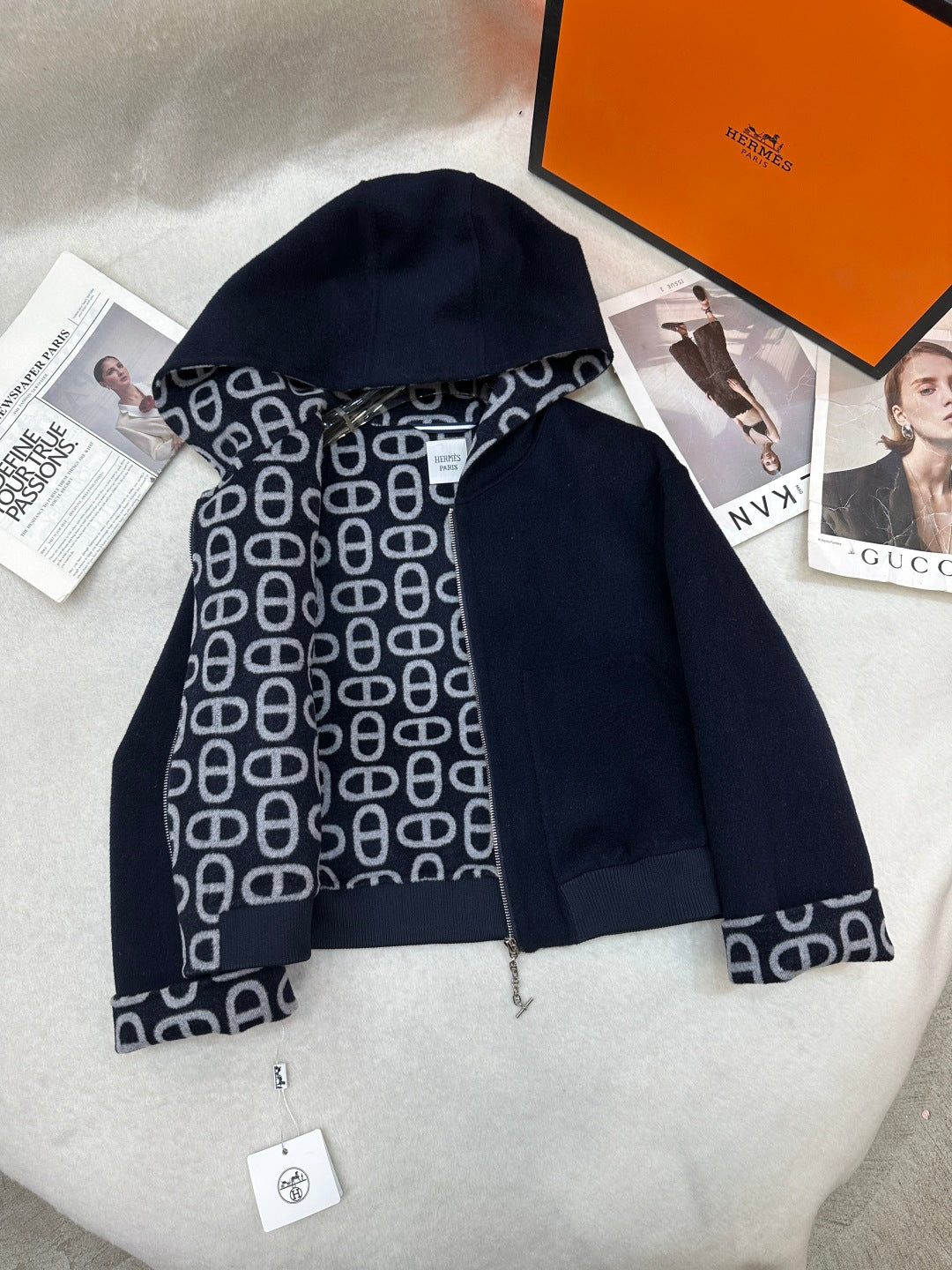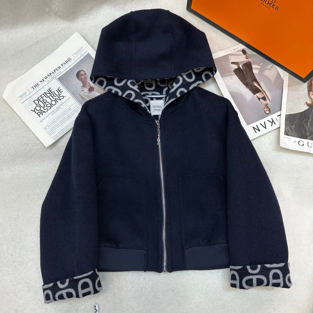 HM 25 Navy Blue Cashmere Cropped Coat 280337
