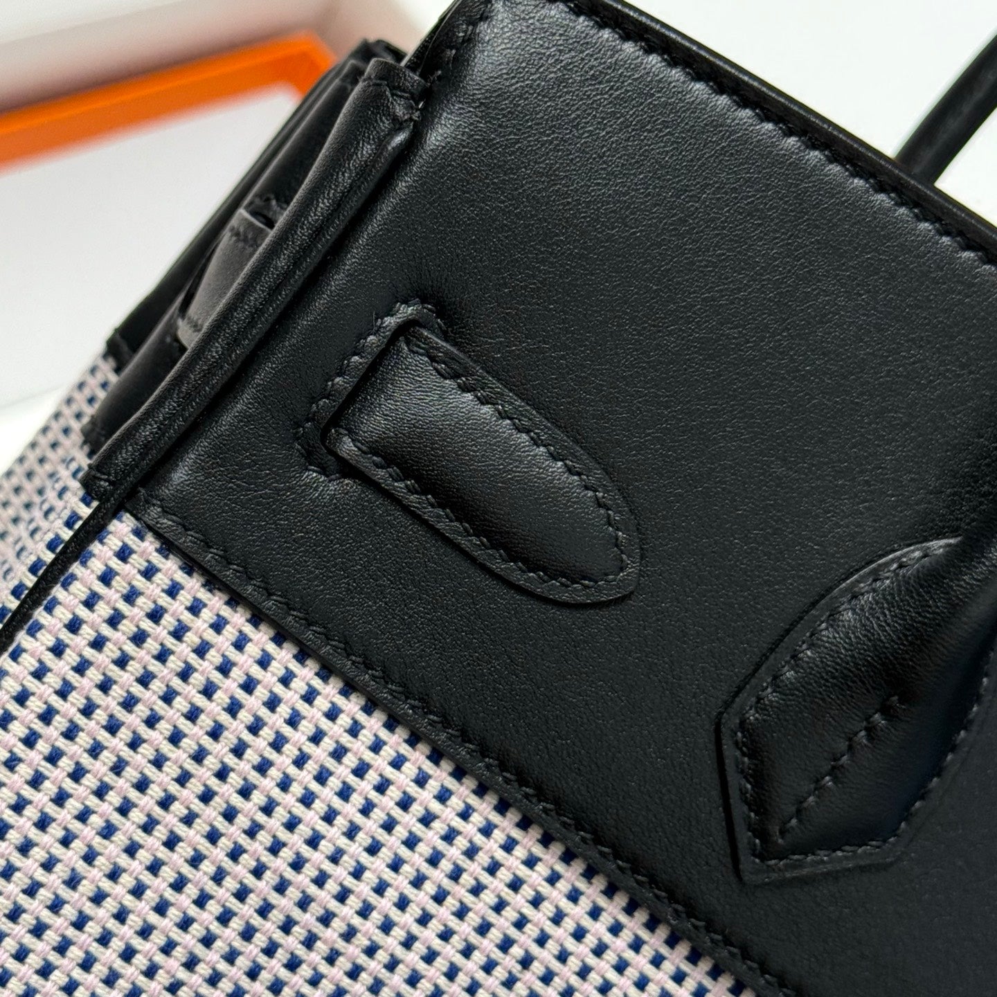 HM Birkin 30cm Black Swift Leather Pink Canvas Gold Hardware