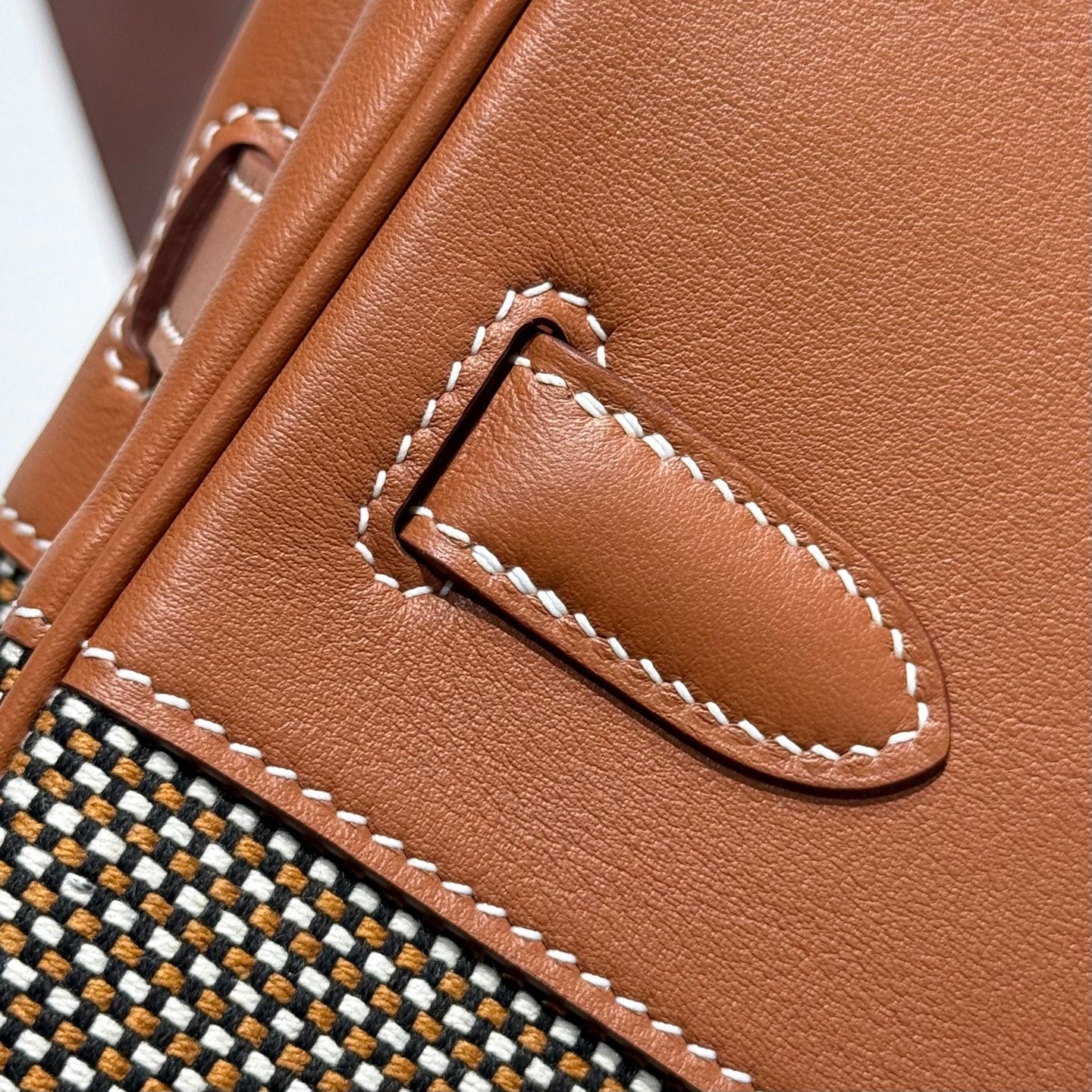 HM Birkin 30cm Gold Swift Leather Brown Canvas Gold Hardware