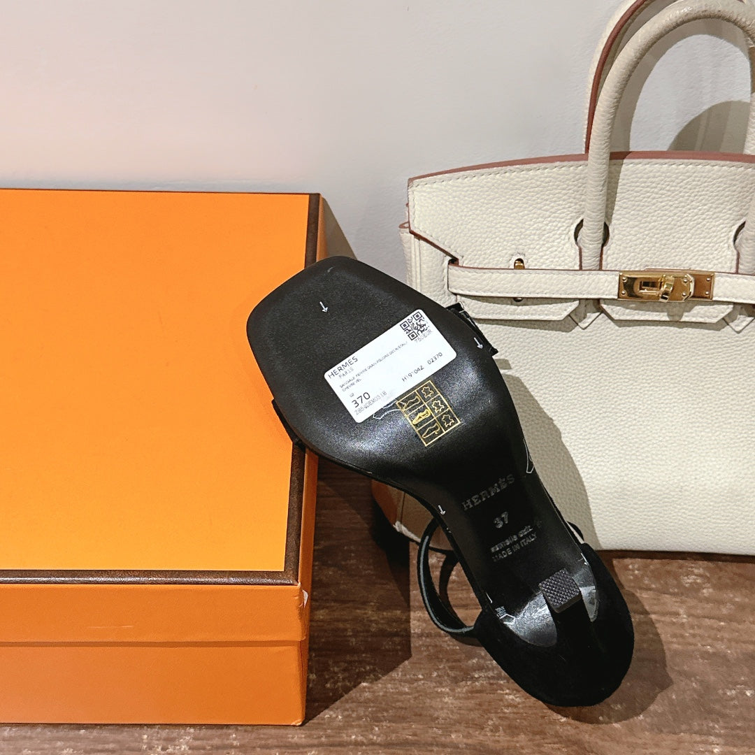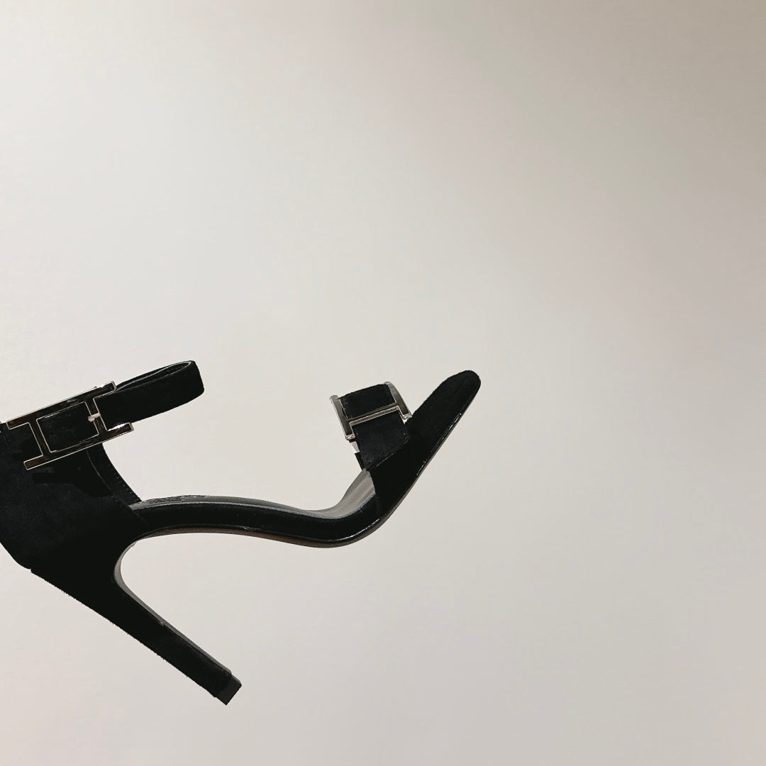 HM Buckle Sandals 10.5cm Black Calfskin 308180