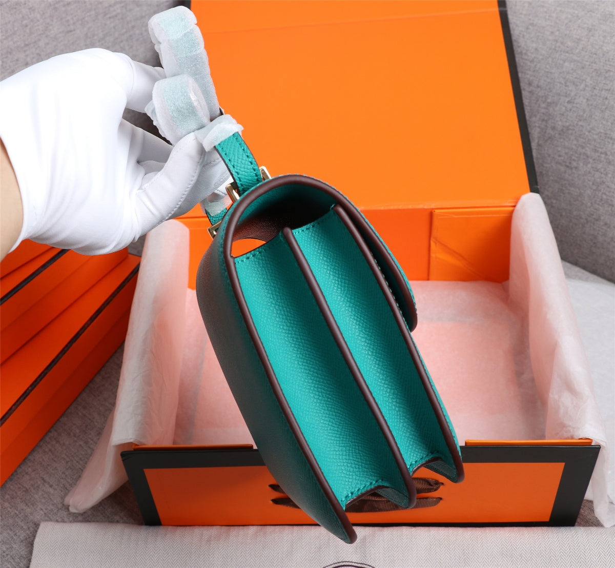 HM CONSTANCE BAG 19 TURQUOISE EPSOM GOLD HARDWARE