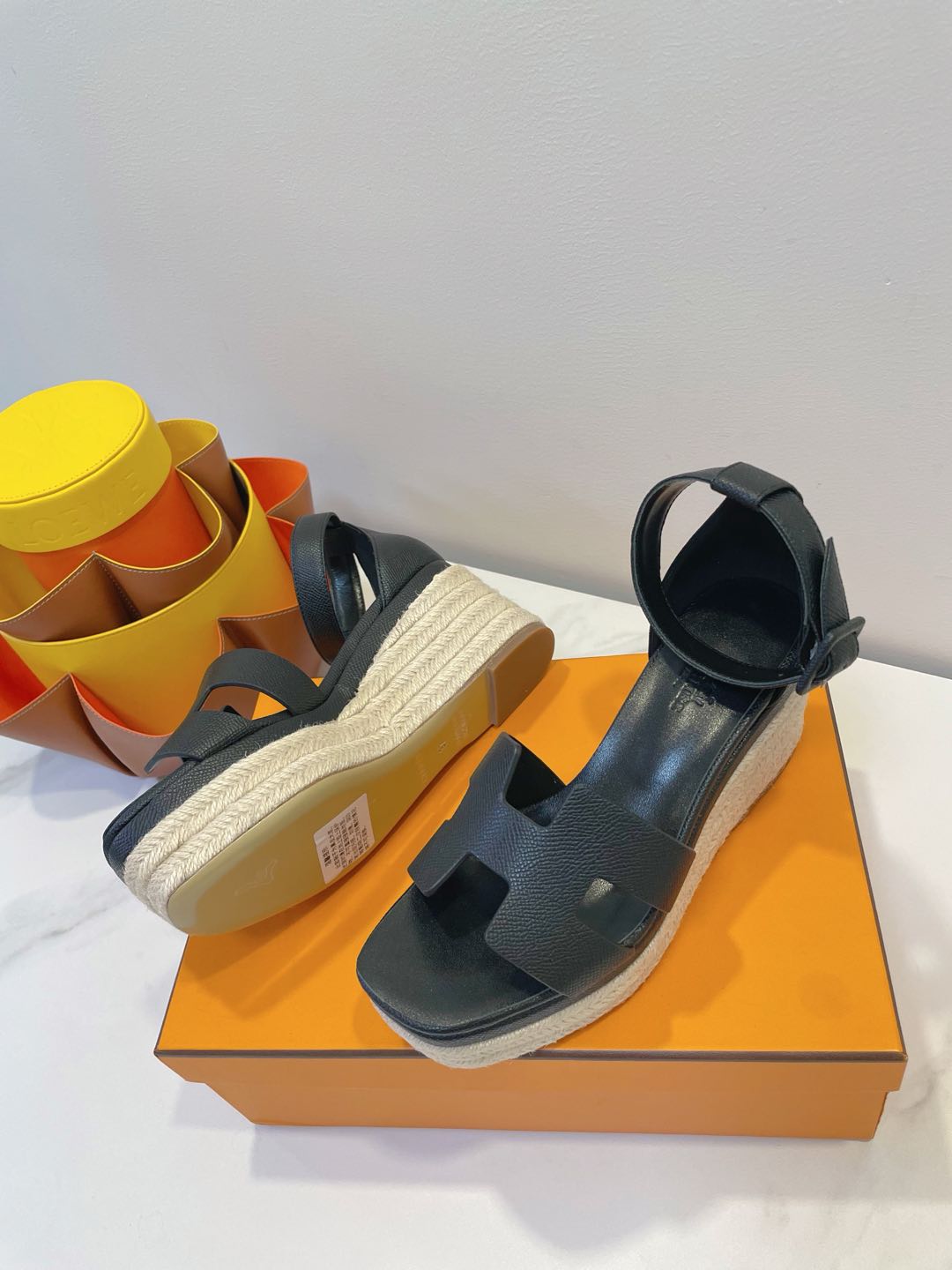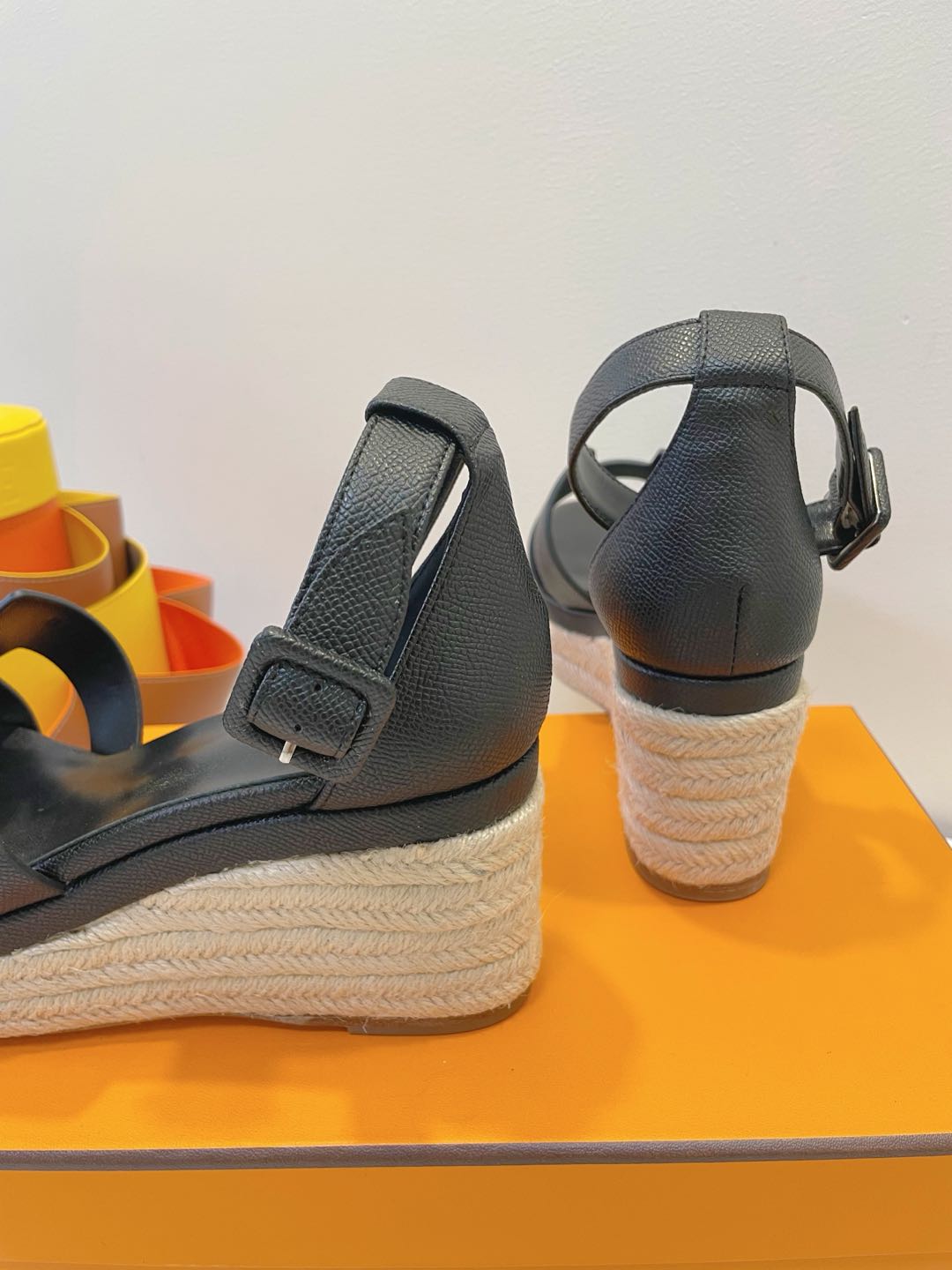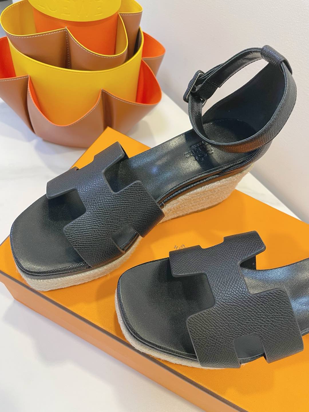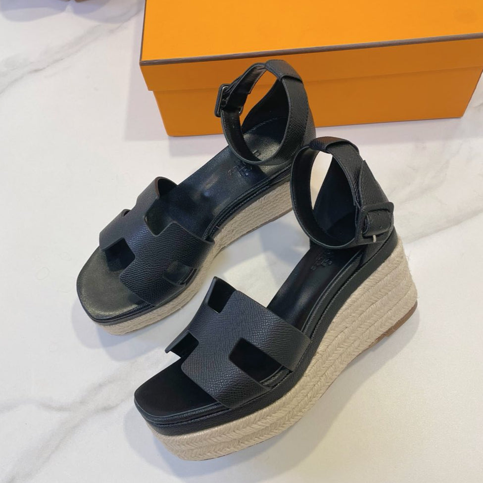- Material: Cowhide, wedged rope heel