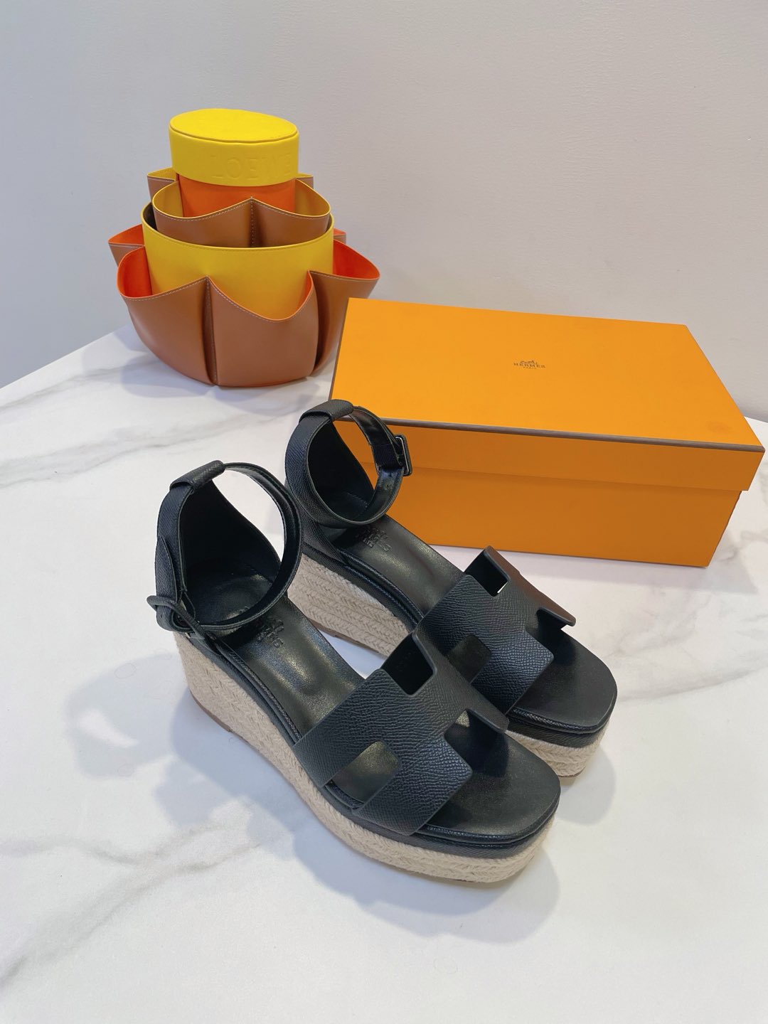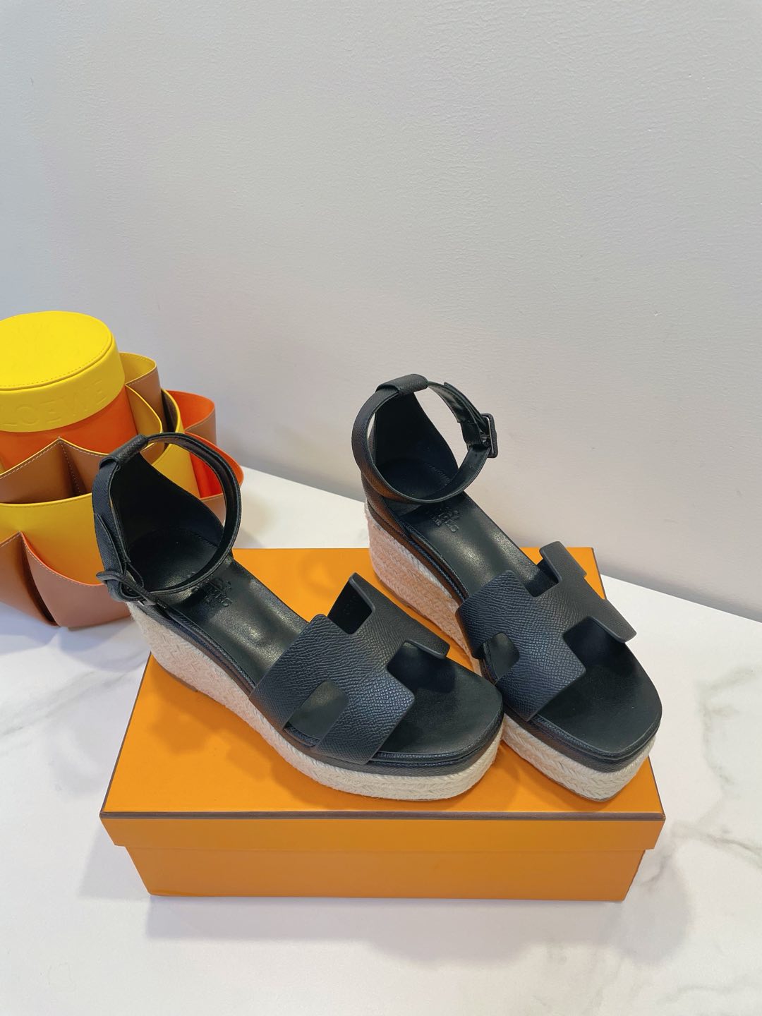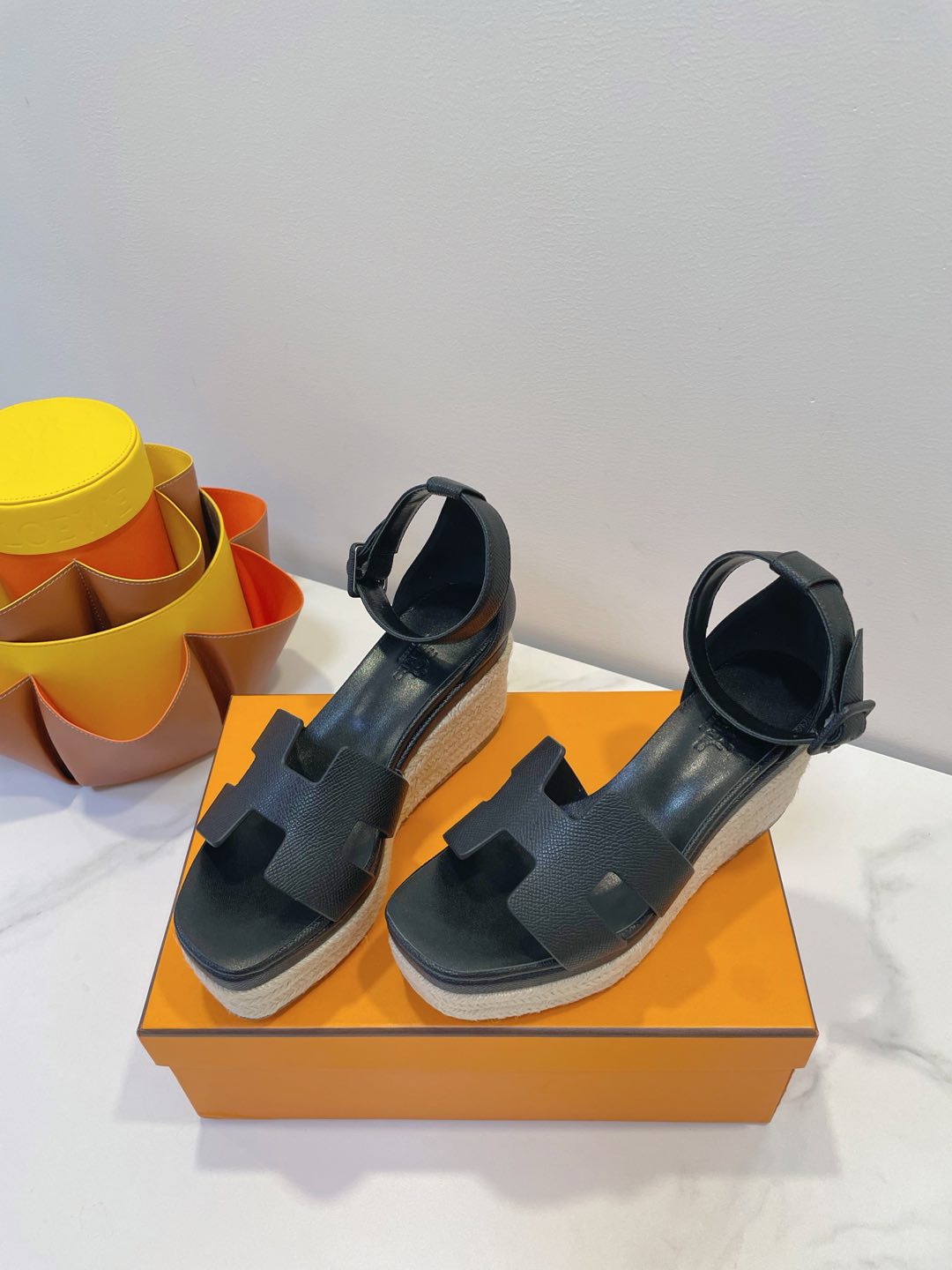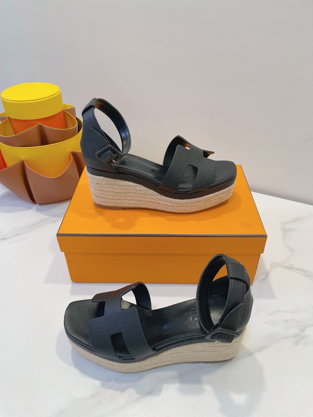 - Material: Cowhide, wedged rope heel