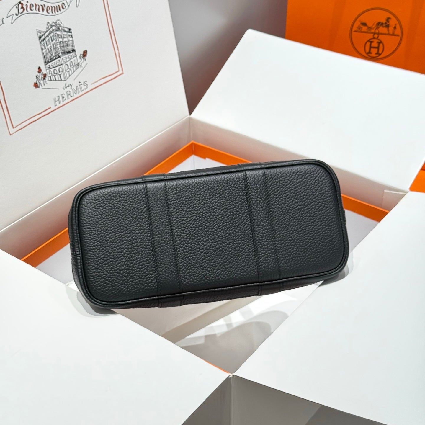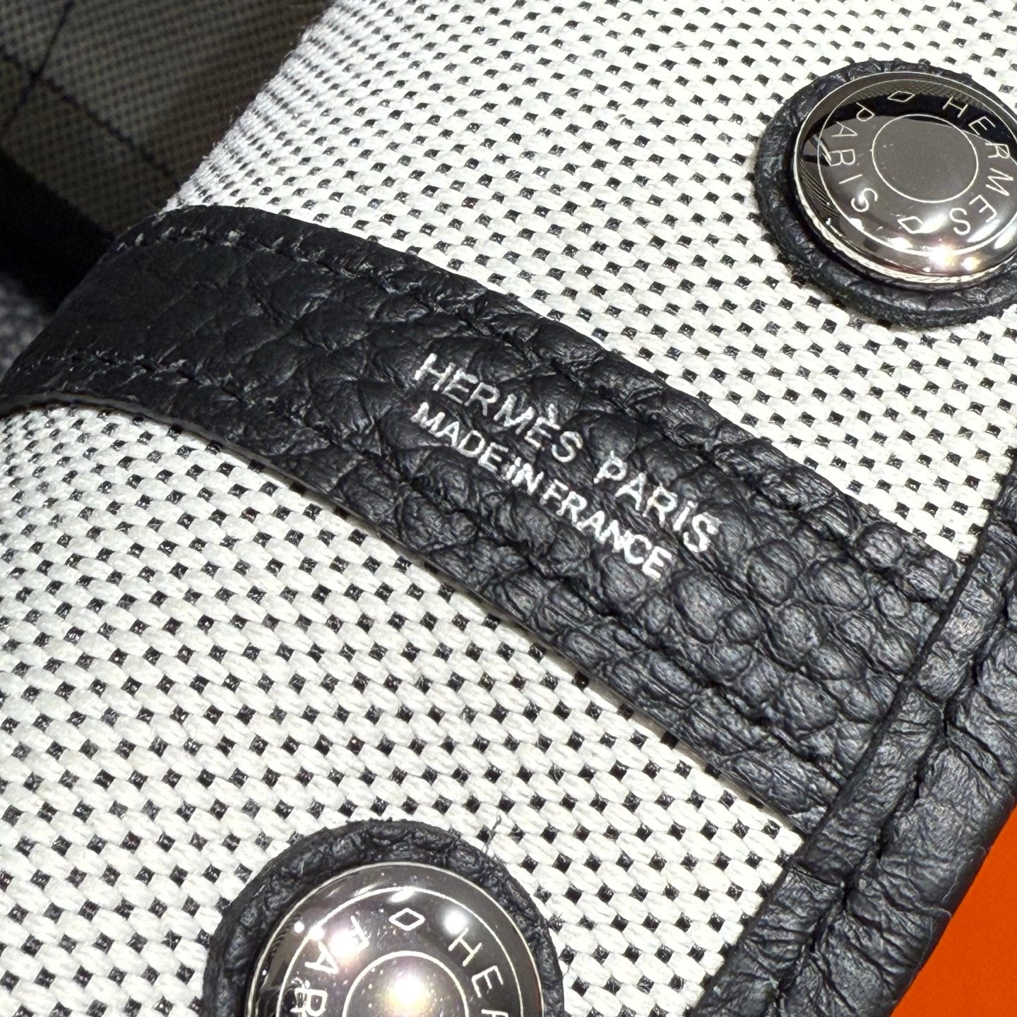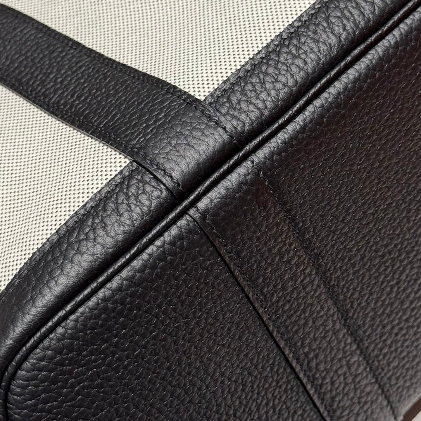 HM Garden Party 30cm Bag Black Togo Grey Canvas