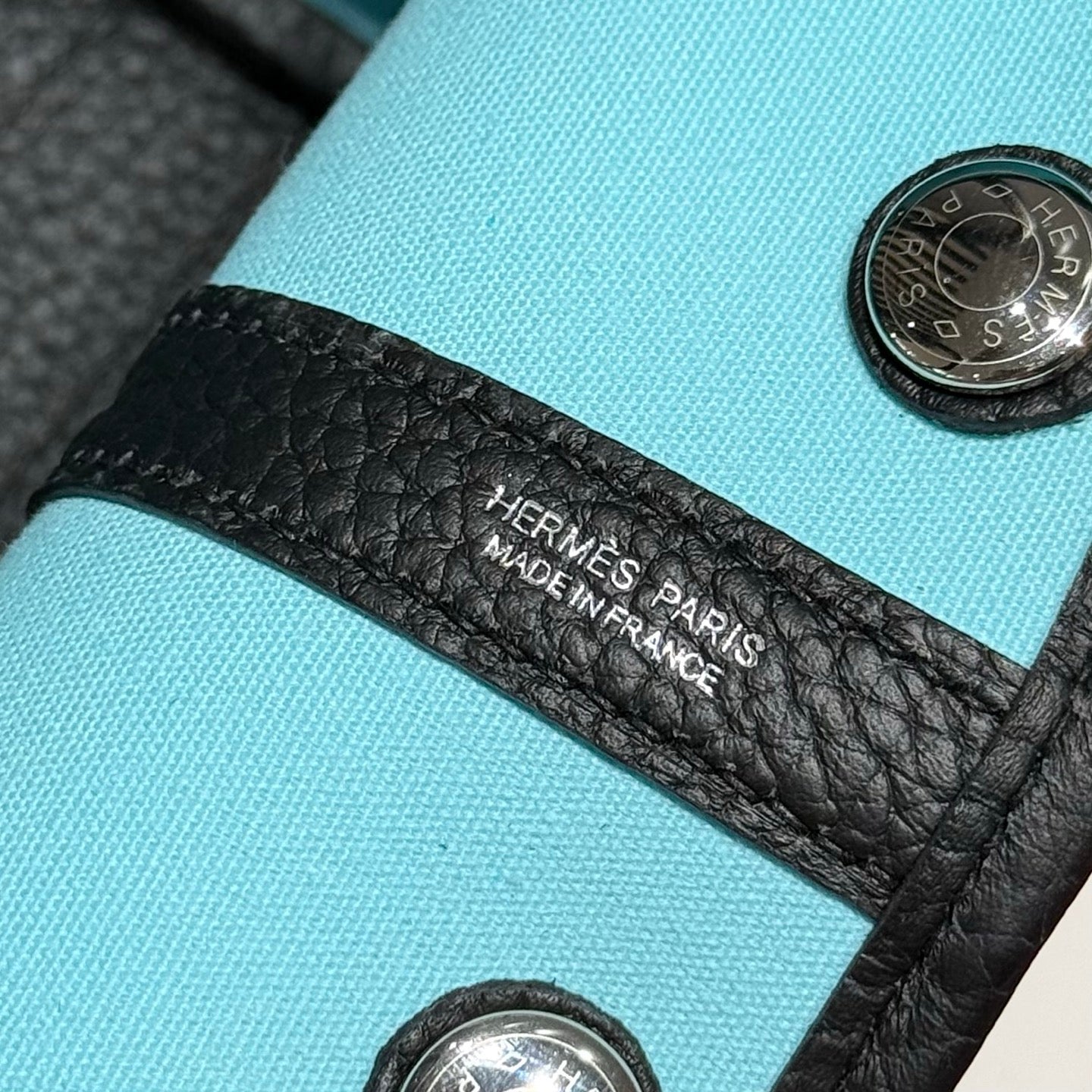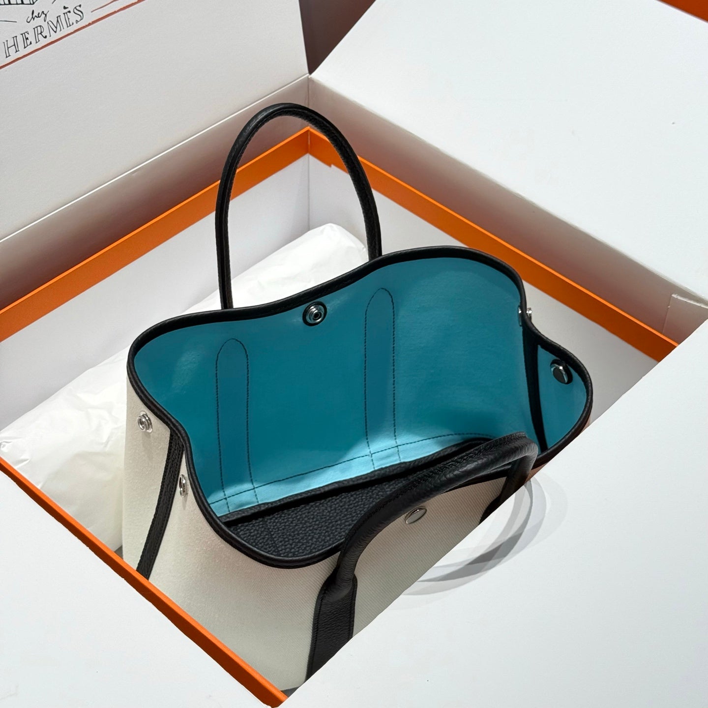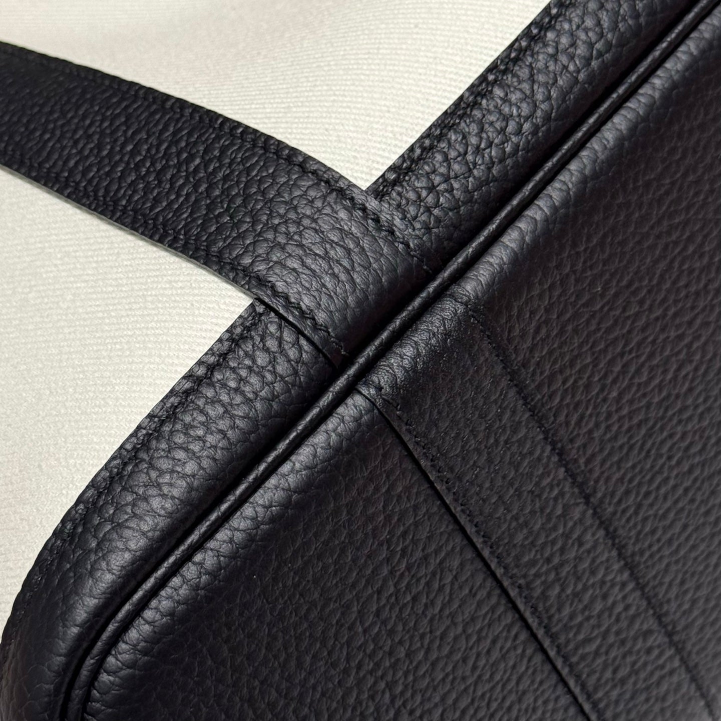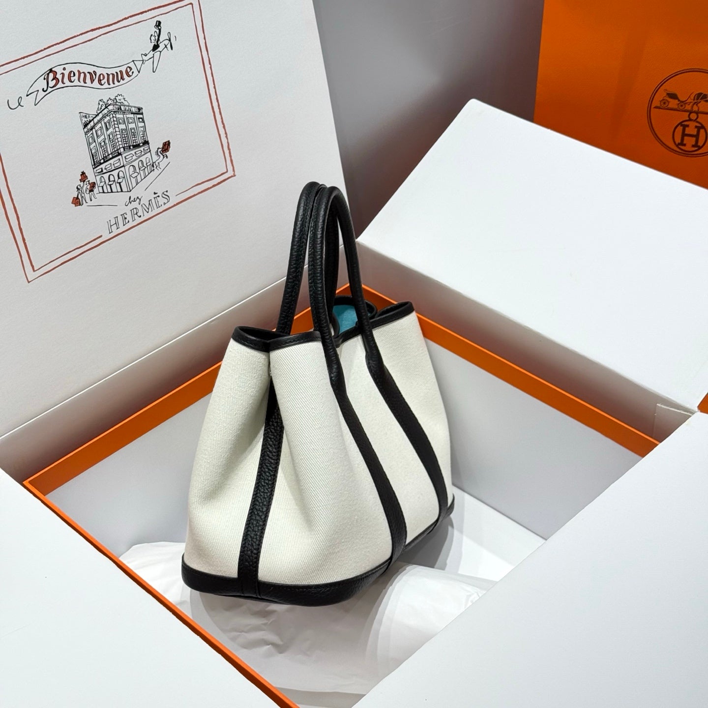 HM Garden Party 30cm Bag Black Togo White Canvas