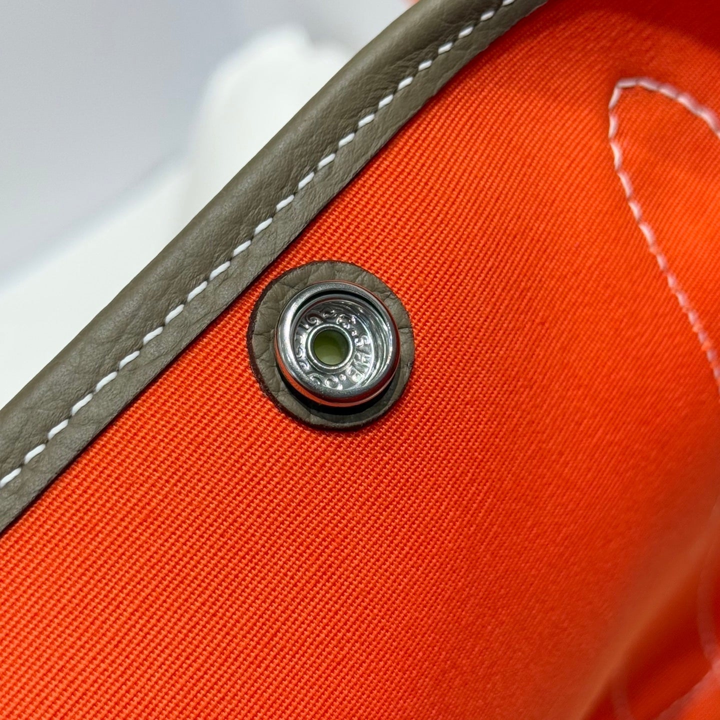 HM Garden Party 30cm Bag Etoupe Togo Orange Canvas