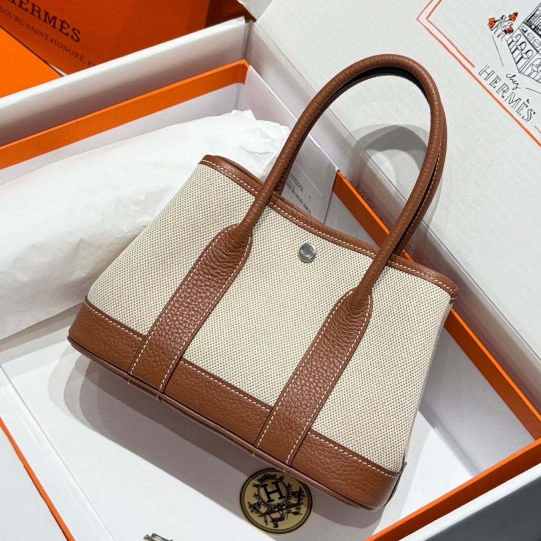 HM Garden Party Mini 23cm Bag Gold Togo Cream Canvas