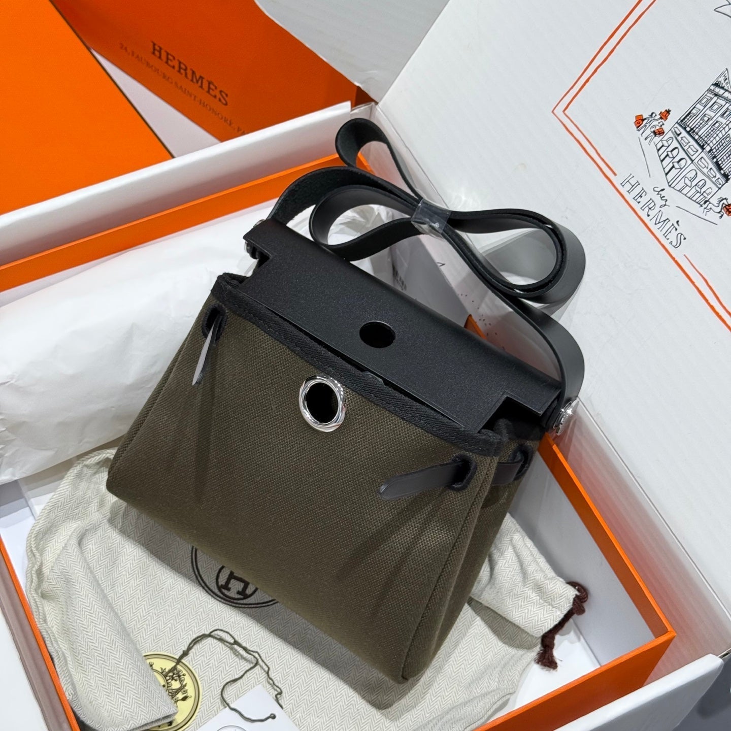 HM Herbag Silver Buckle 20 Army Green Canvas and Hunter Cowhide 243350