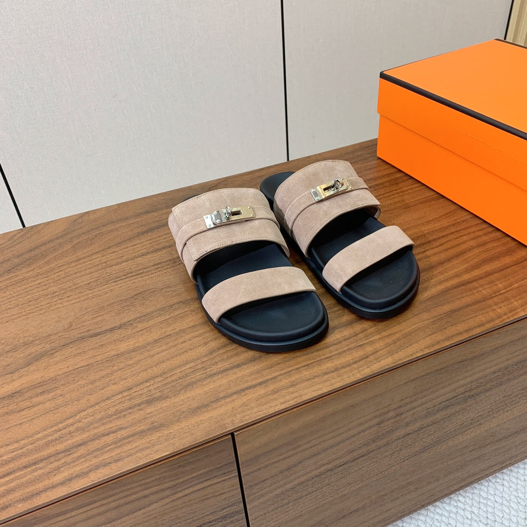 HM Jackson Sandal Pure Beige Suede Calfskin 294049