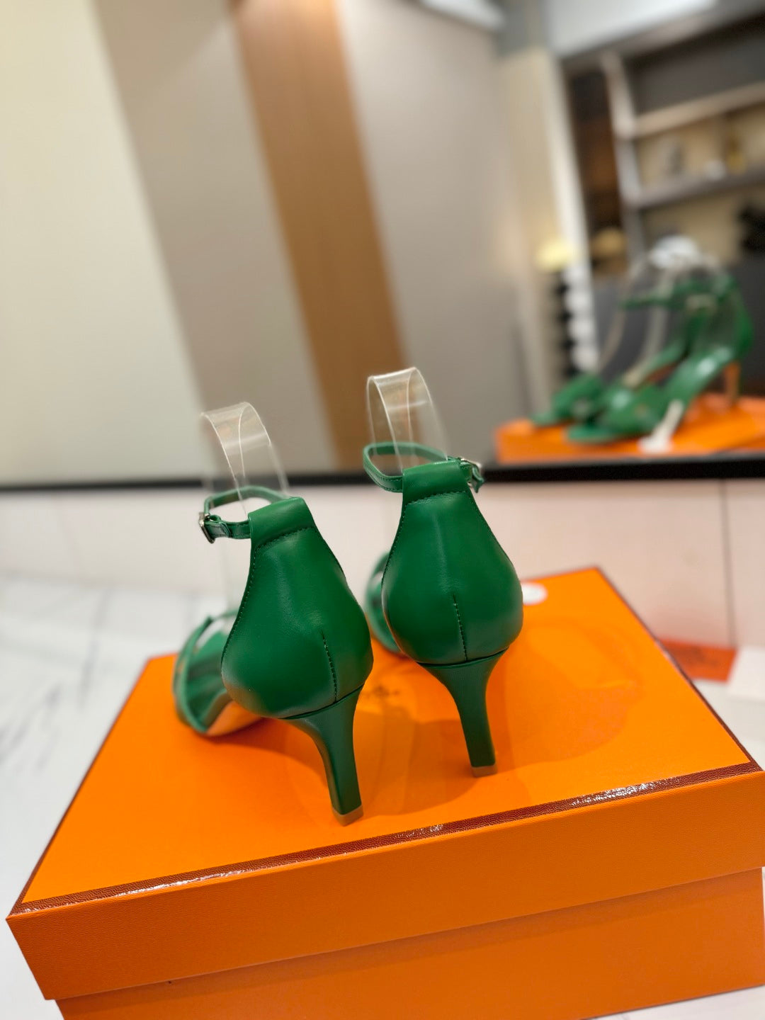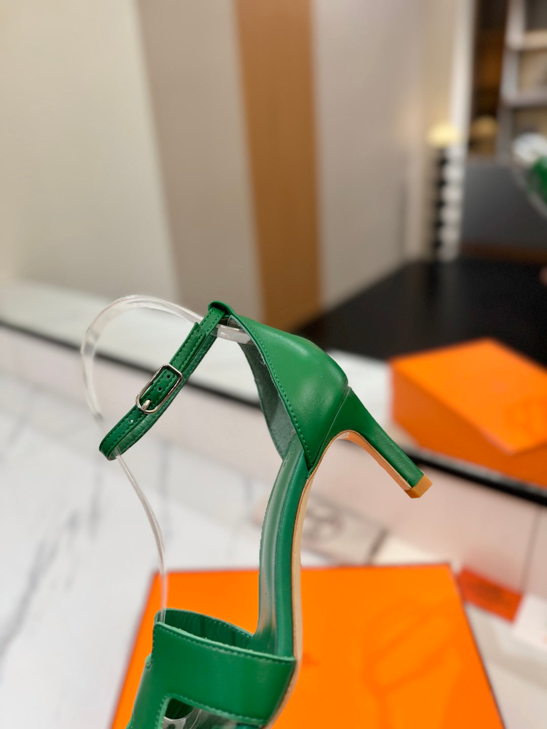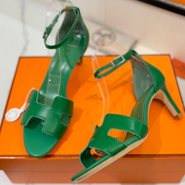 HM Joy 65mm Heeled Sandals Green Flat Cowhide 294932