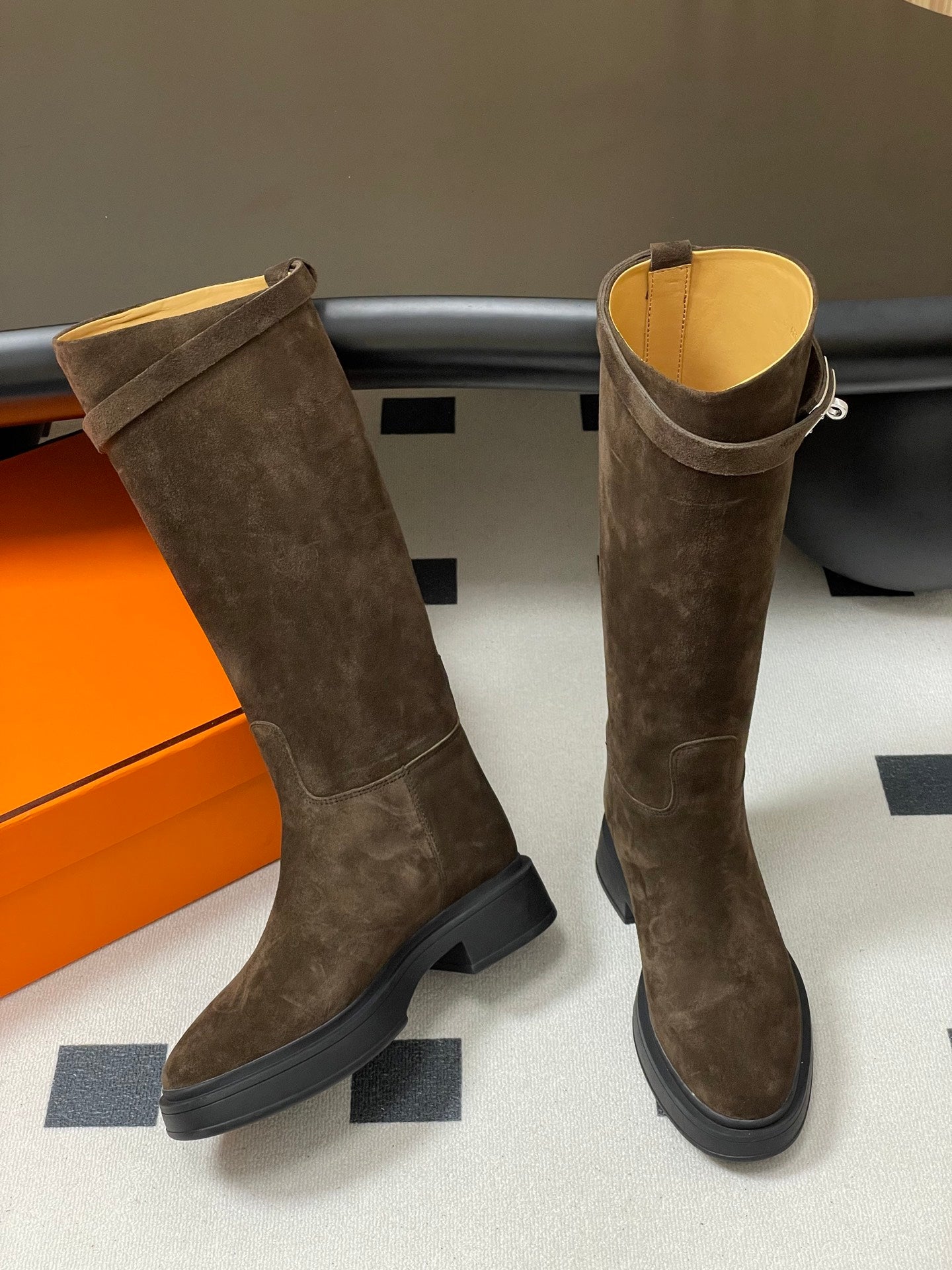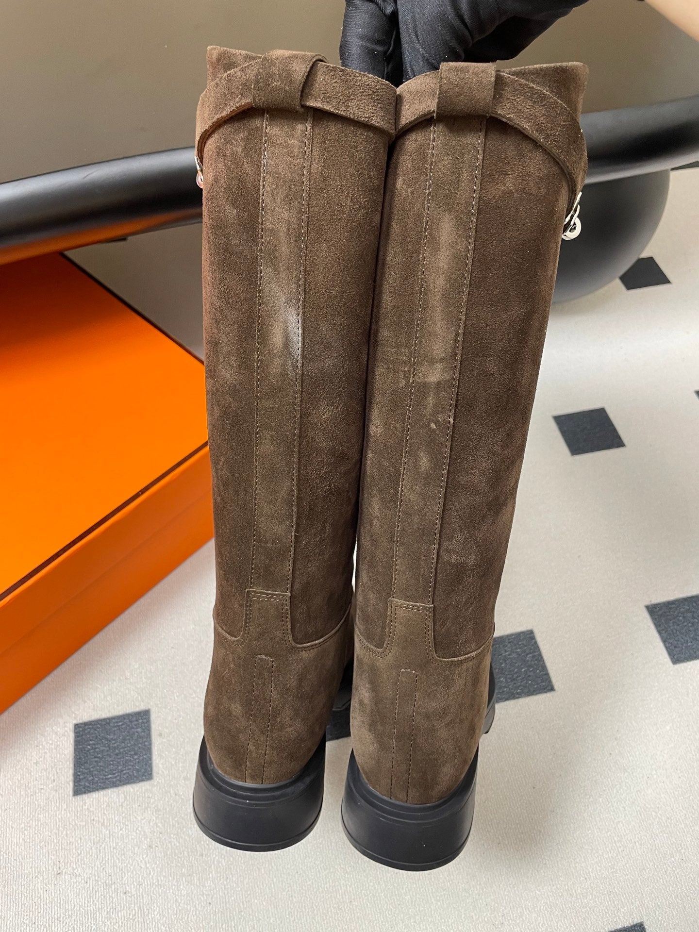 HM Jumping Boots Dark Brown Kelly Buckle Suede 423265
