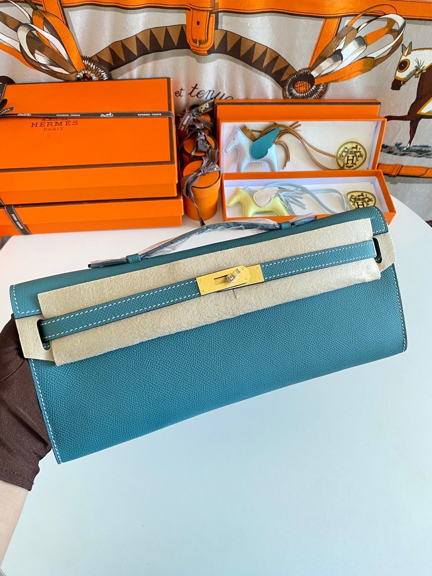 HM Kelly Cut 31 Teal Blue Epsom Leather Gold Hardware 229062