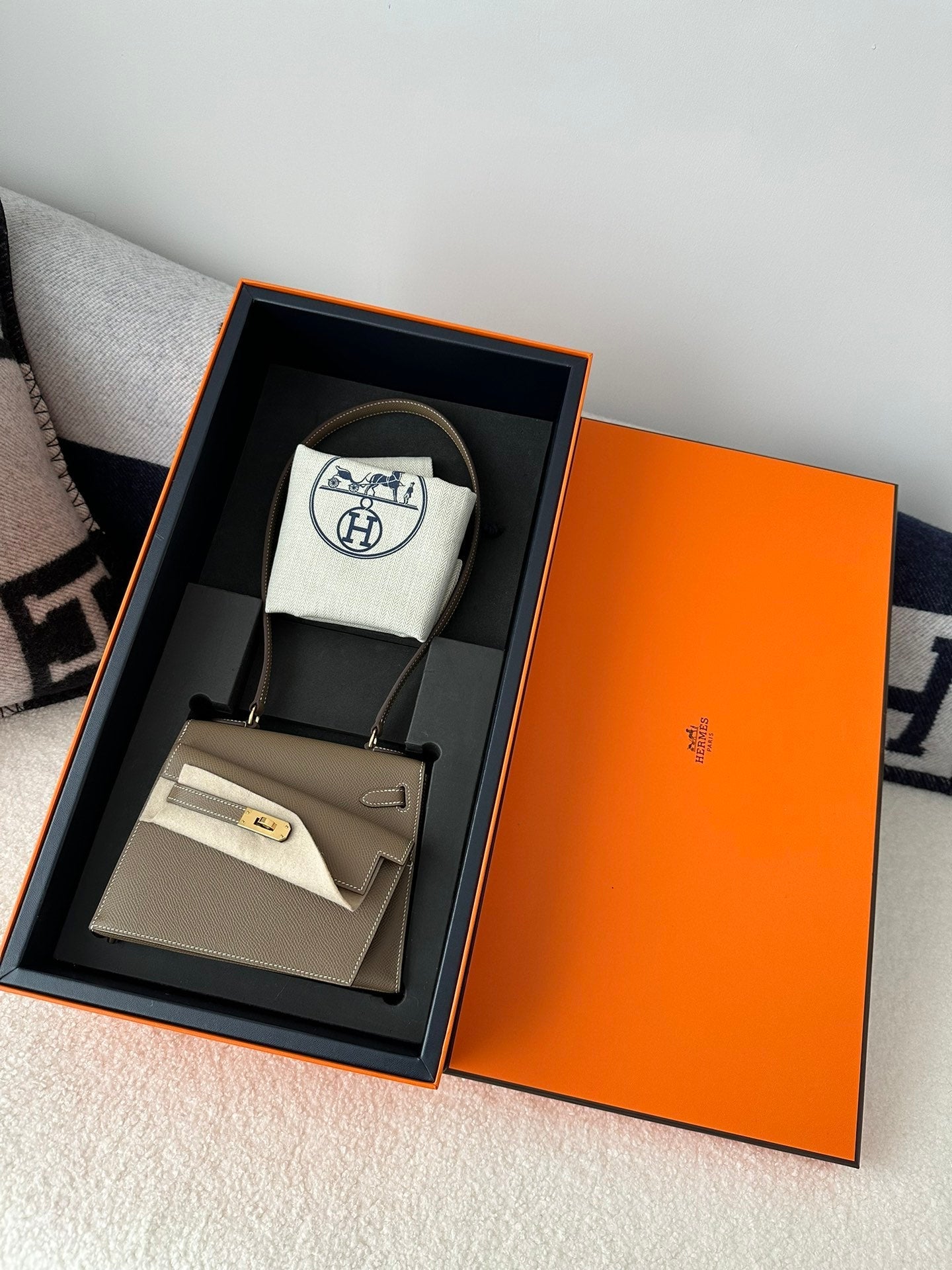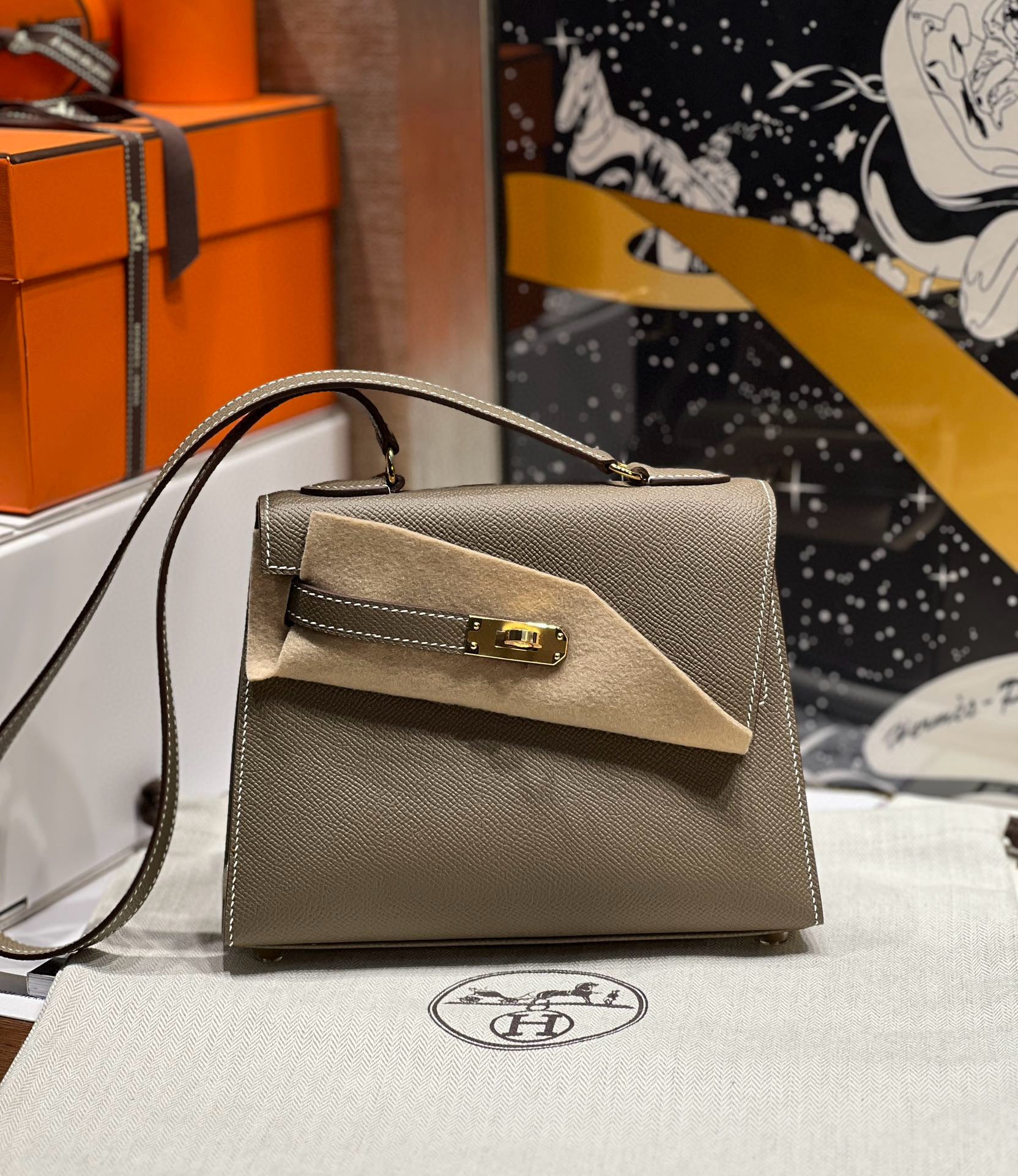 HM Kelly Desordre 20cm Etoupe Grey Epsom Gold Hardware