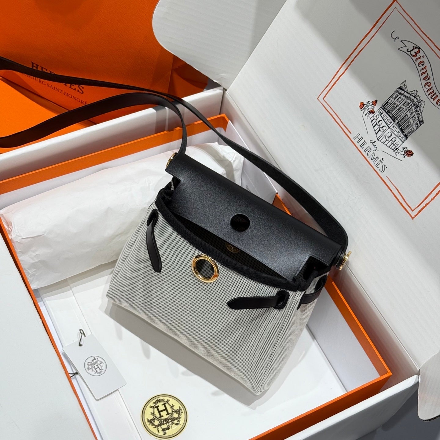 HM Mini Herbag Gold Buckle 20 Ecru White Canvas and Hunter Cowhide 243226