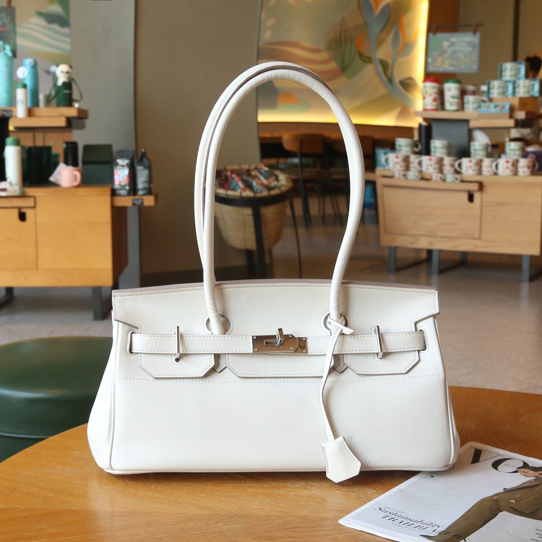 HM Shoulder Birkin 40cm White Clemence Leather Silver Hardware