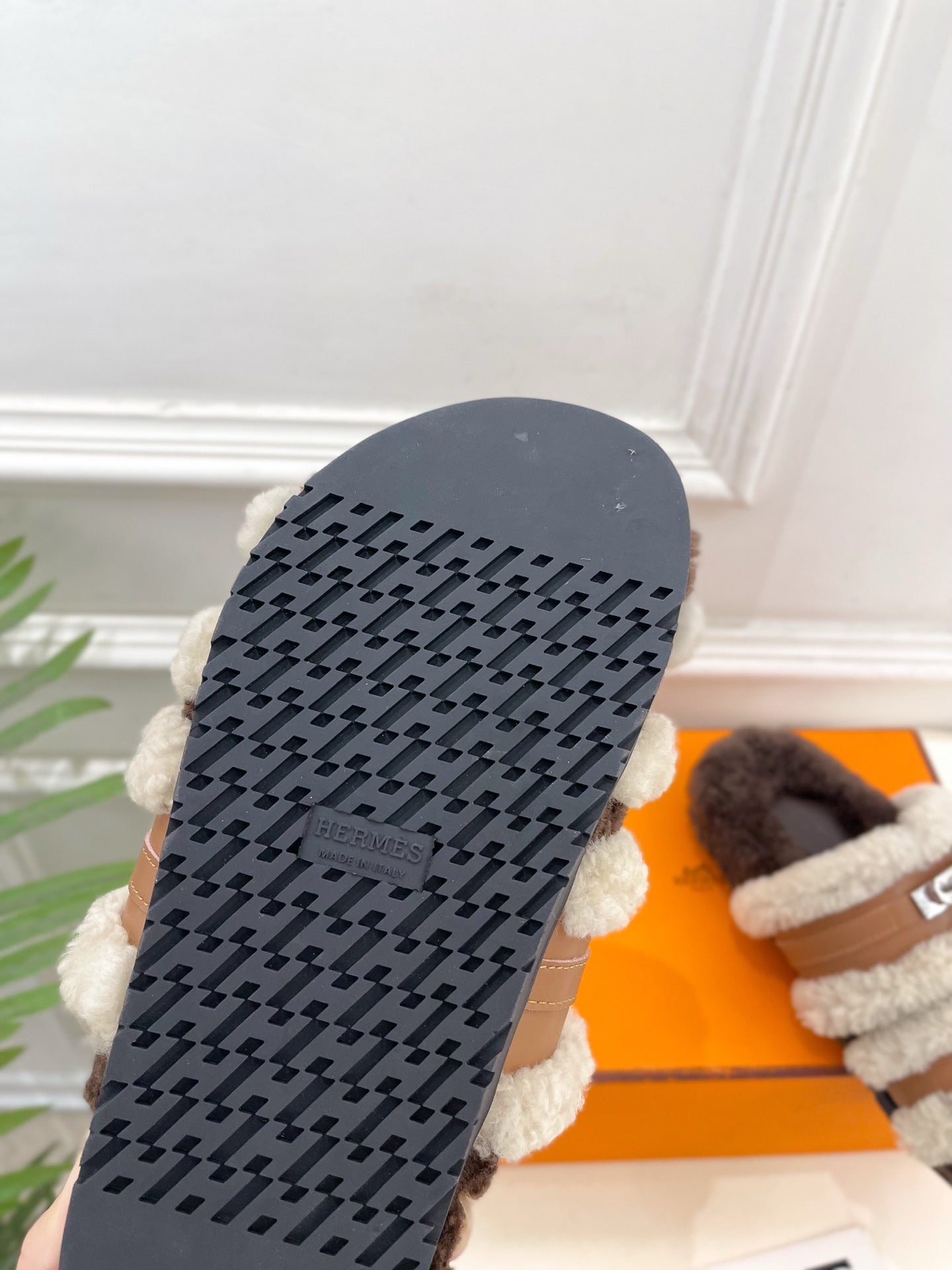HM Slippers Classic Kelly Sliver Buckle Brown Wool 479617