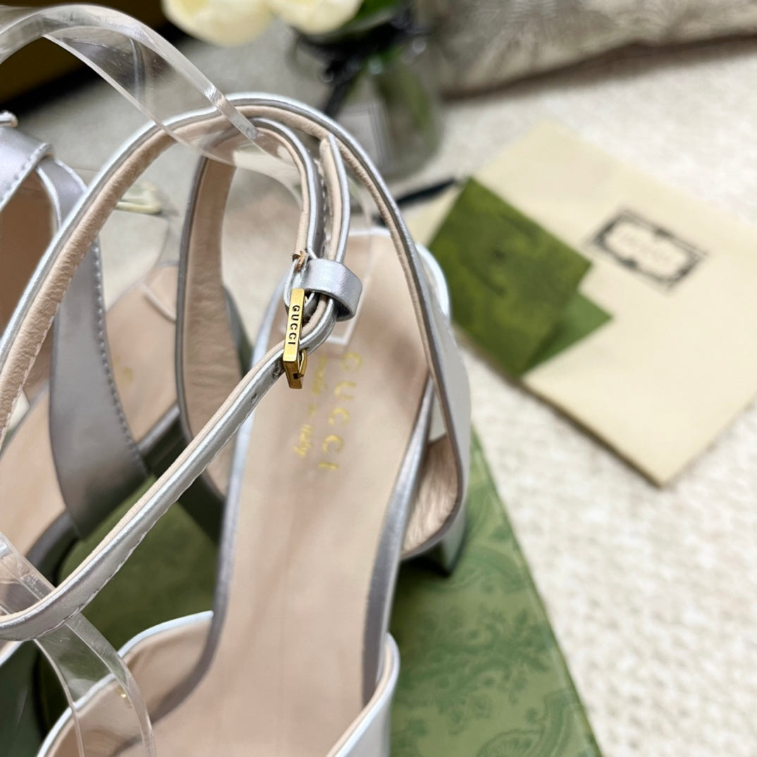 Horsebit 11cm Platform Sandal Silver Metalic Calfskin