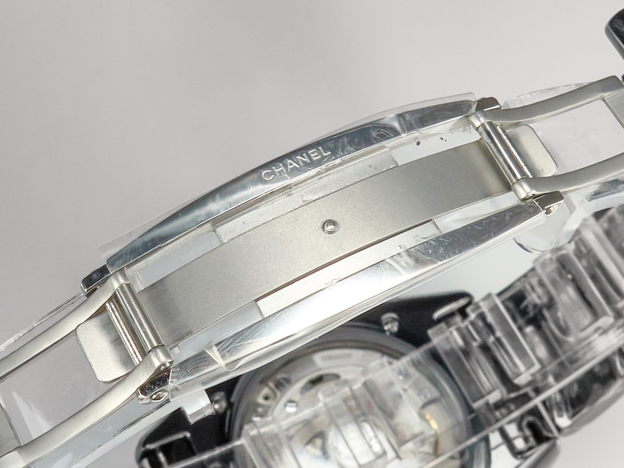 J12 Date Automatic Black Ceramic Diamond Numerals Black Dial Black Steel Hands