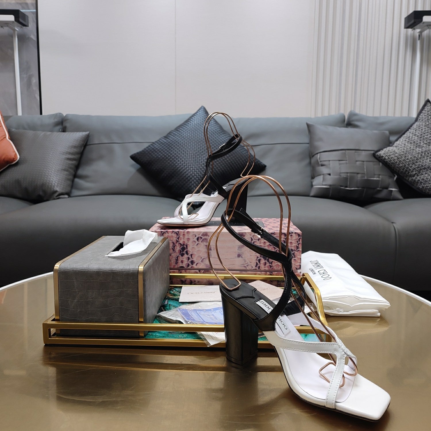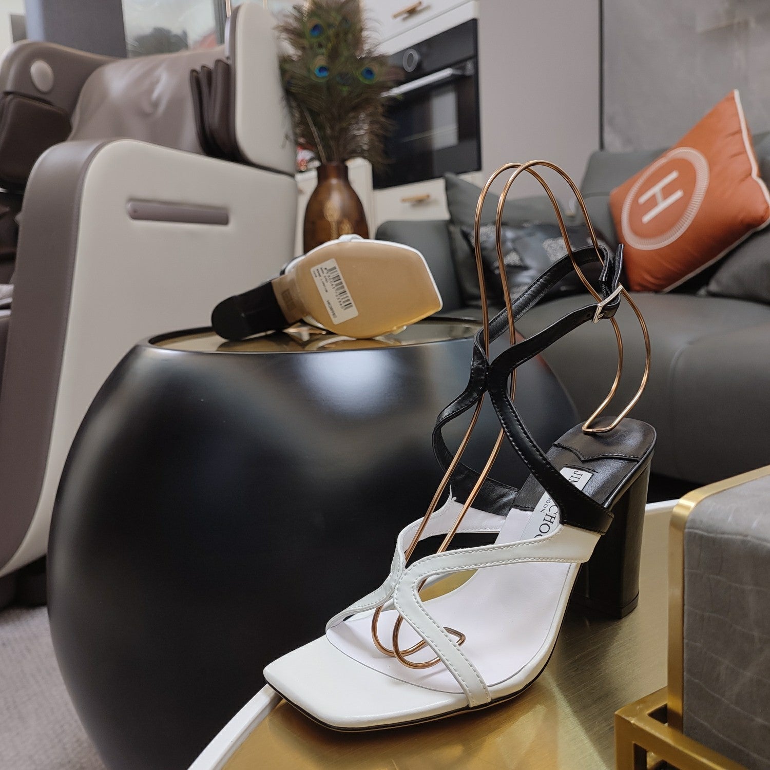 Jimmy 25 Azie Colorblock Sandal 11CM White mix Black Calfskin 240112
