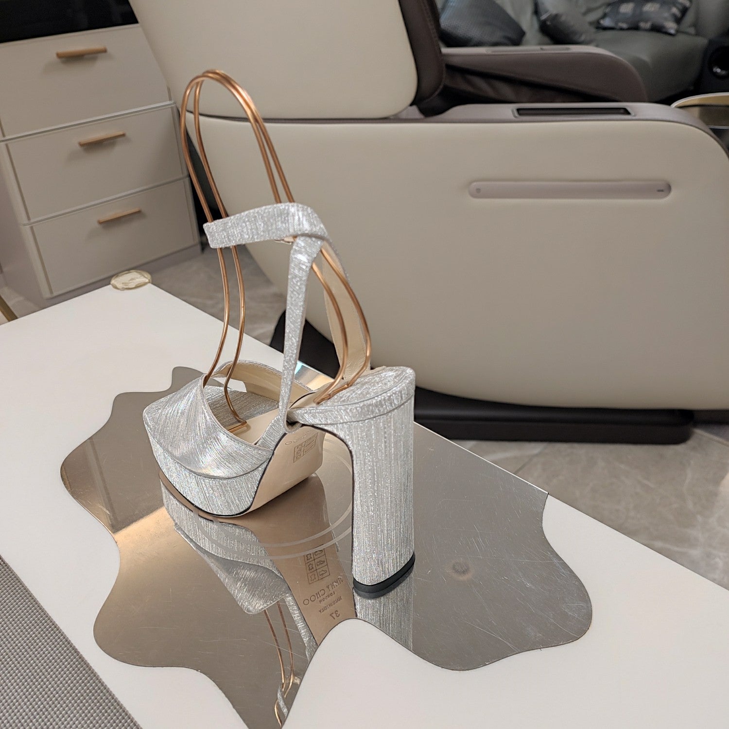 Jimmy 25 Platform Sandal Heels Silver Satin Fabric 240016