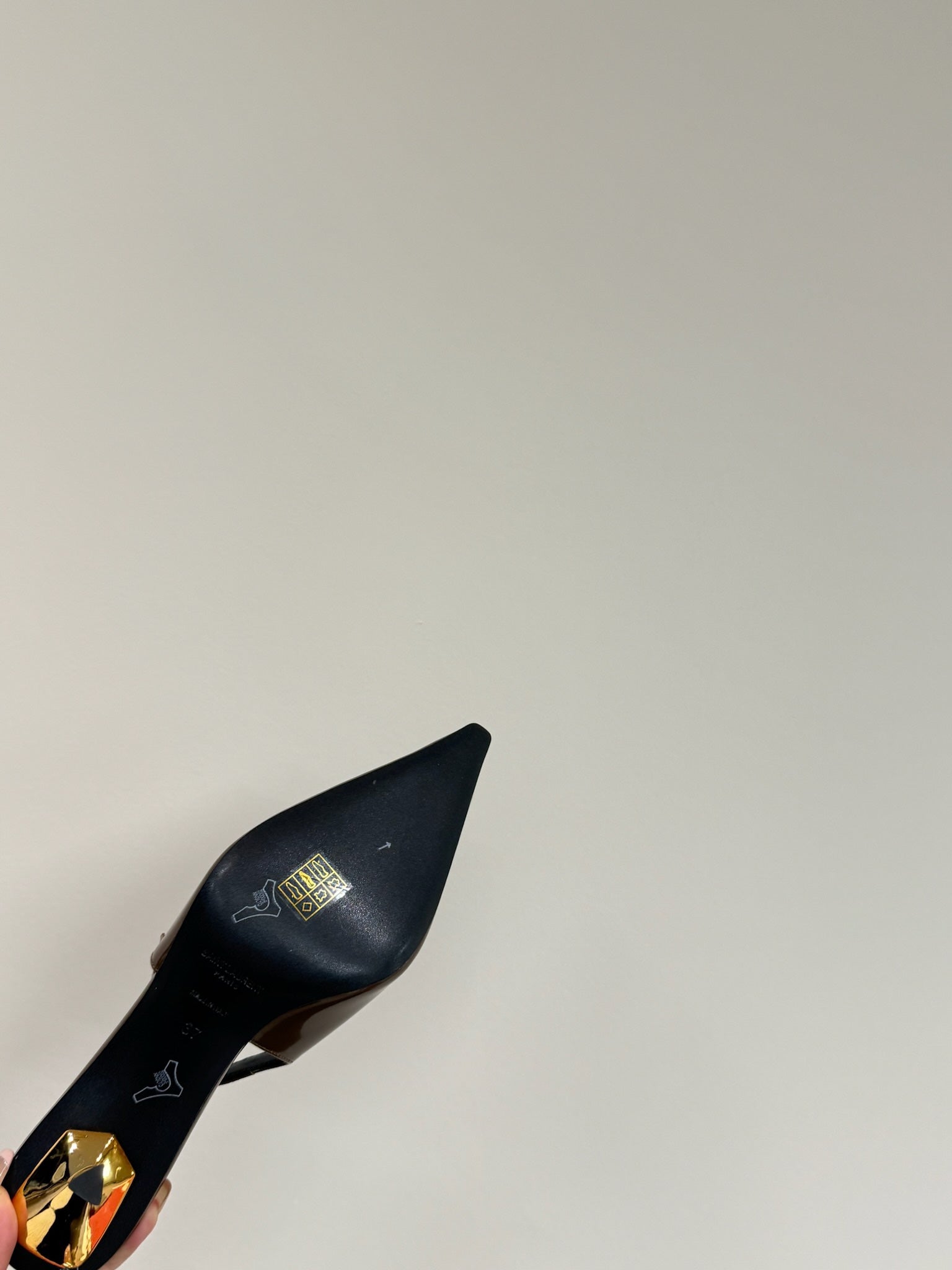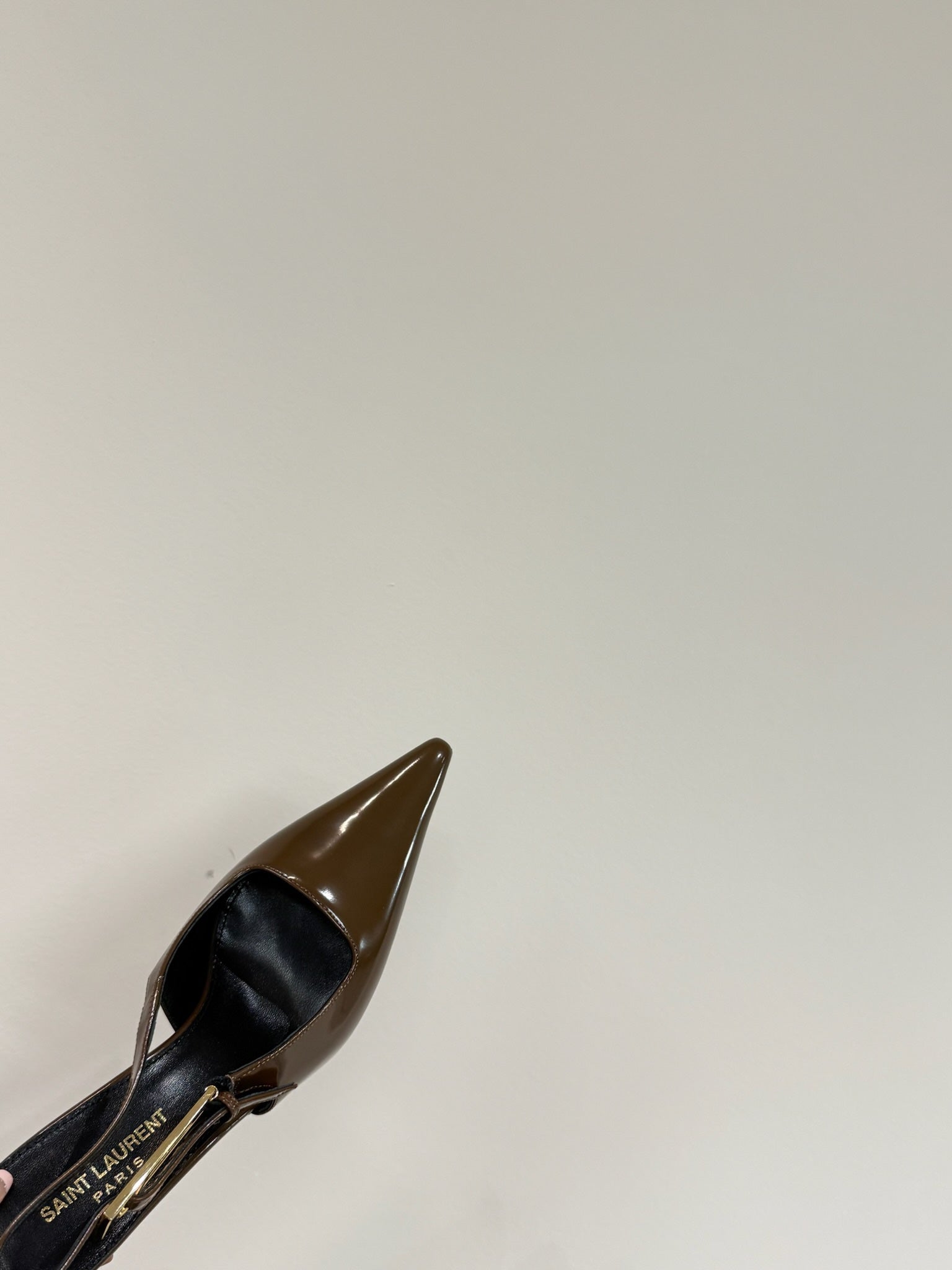 LEE SLINGBACK MID PUMPS IN BARK BROWN SHINY CALFSKIN