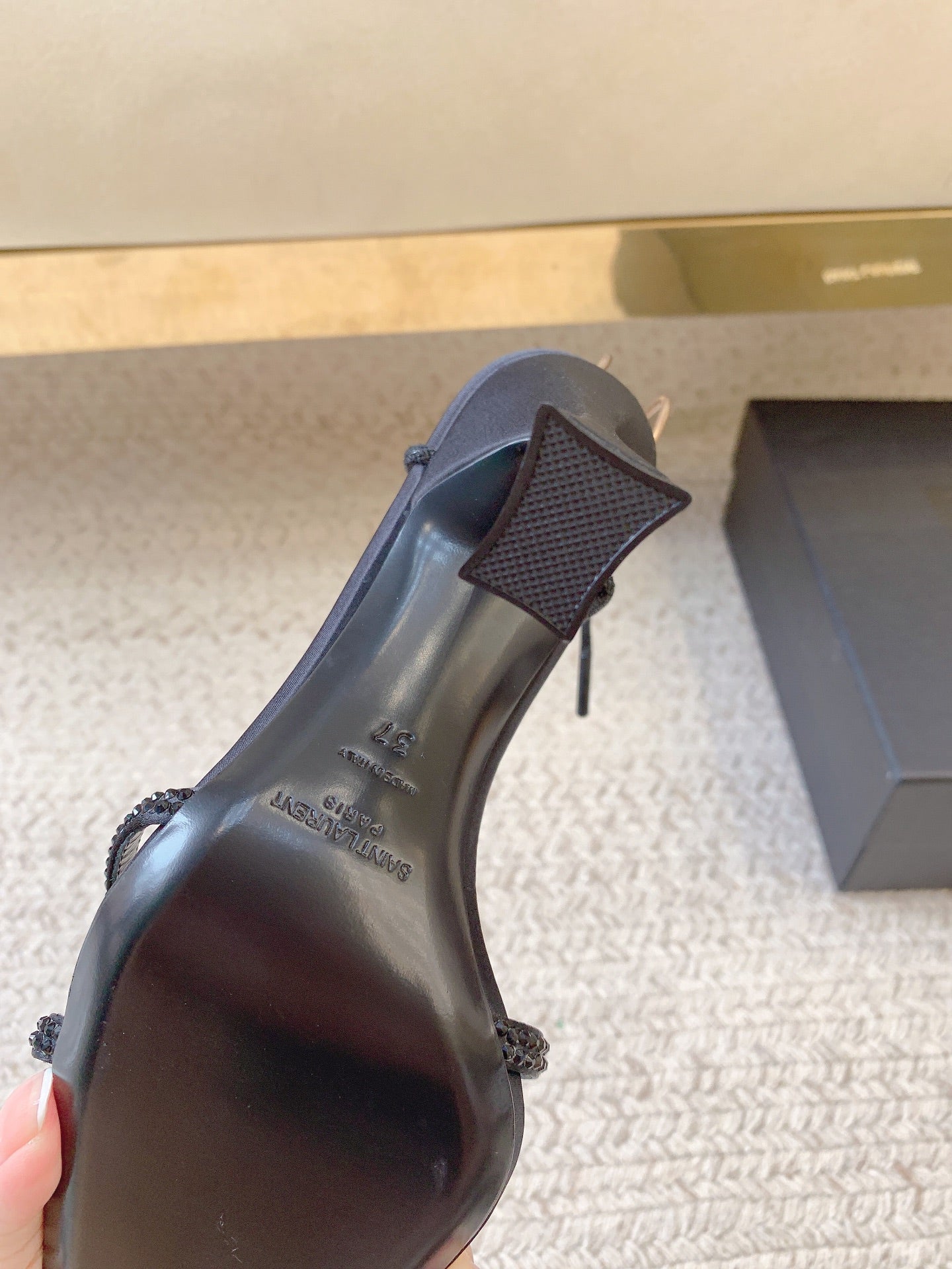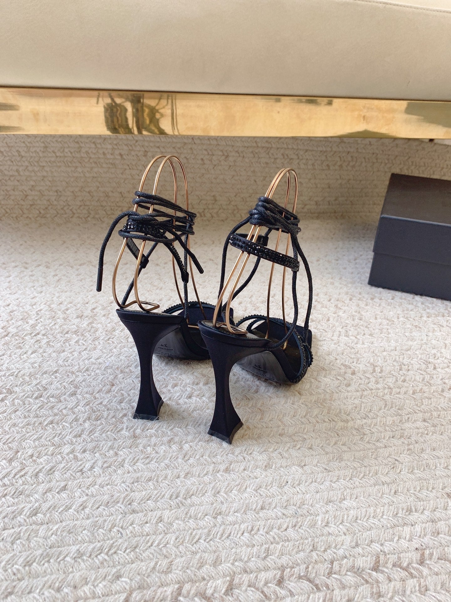 LIZA SANDALS IN BLACK SILK WITH CRYSTALS