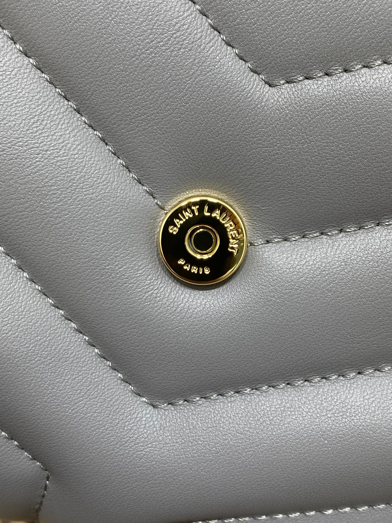LOULOU MINI BAG 20 IN ASH BLUE QUILTED LAMBSKIN GOLD HARDWARE