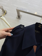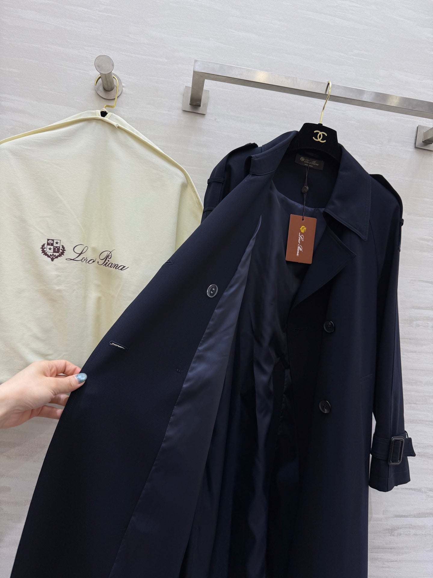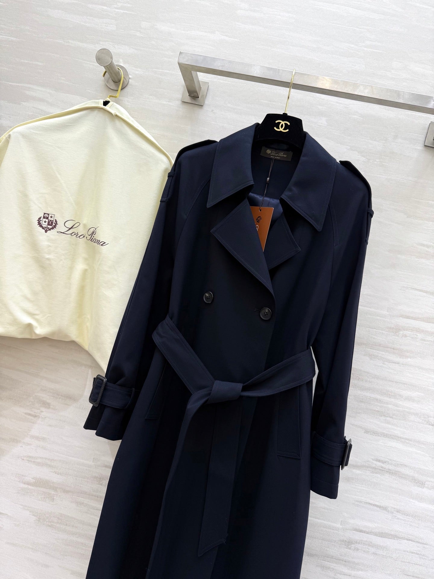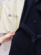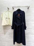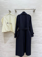 LP 25 Tie-Waist Slim Lapel Long Trench Coat Navy Blue Cotton 305537