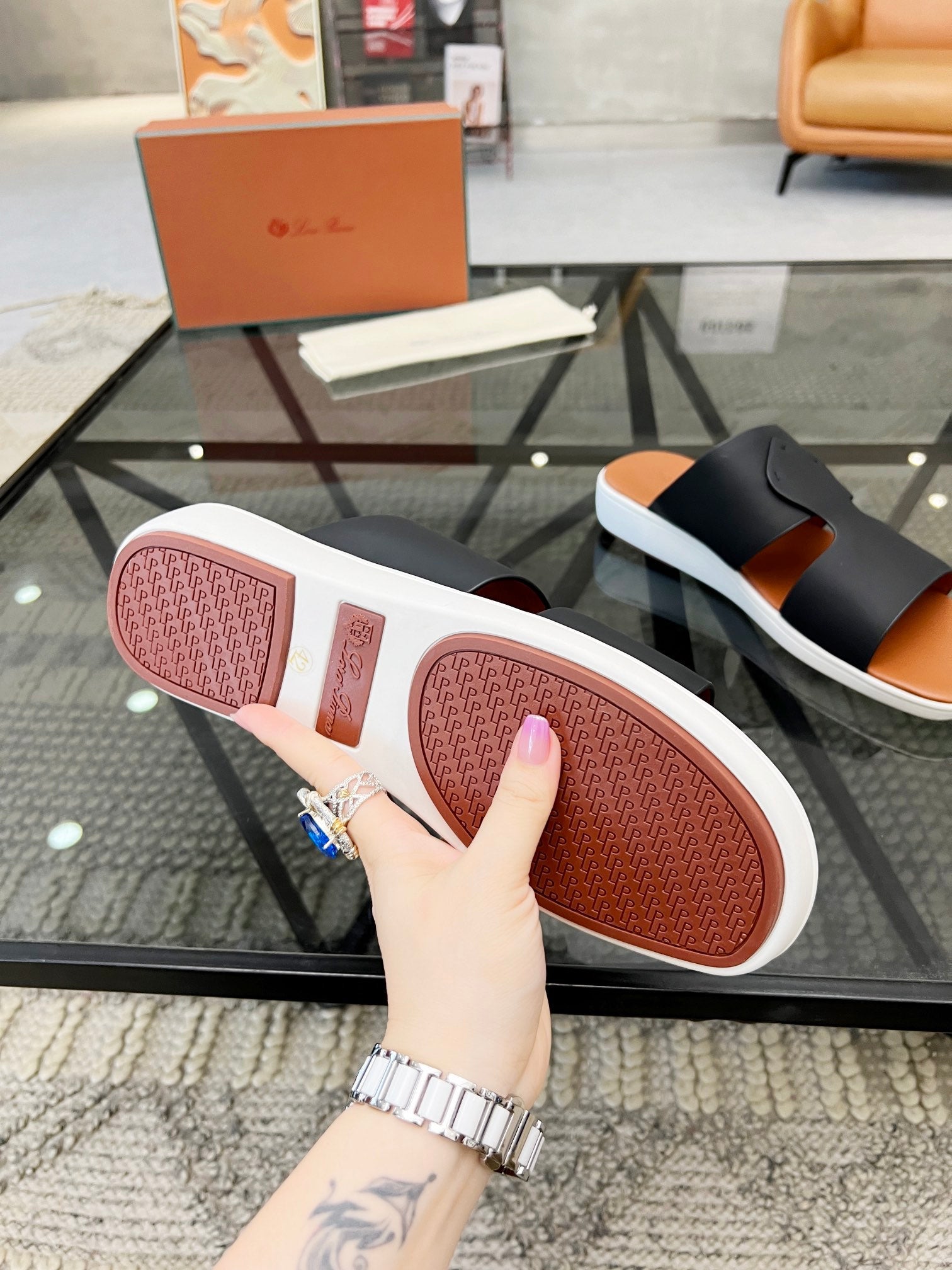 LP CROSSOVER SLIPPERS BLACK CALFSKIN