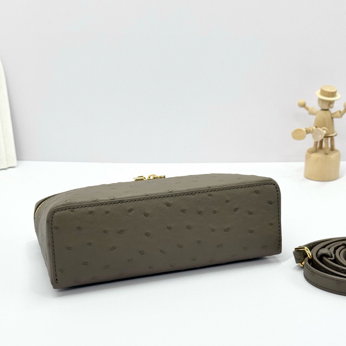 LP Extra Bag Ostrich Pattern Gray Brown Gold Buckle Calfskin