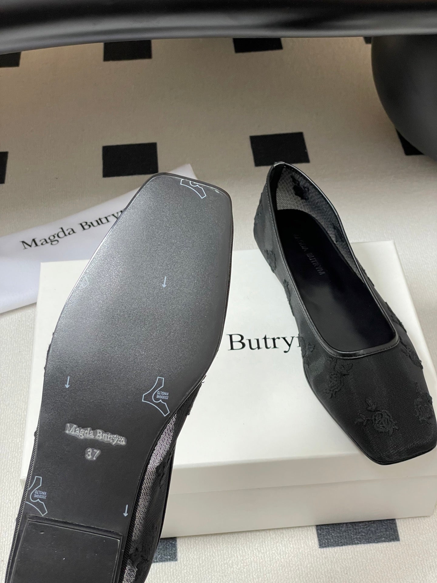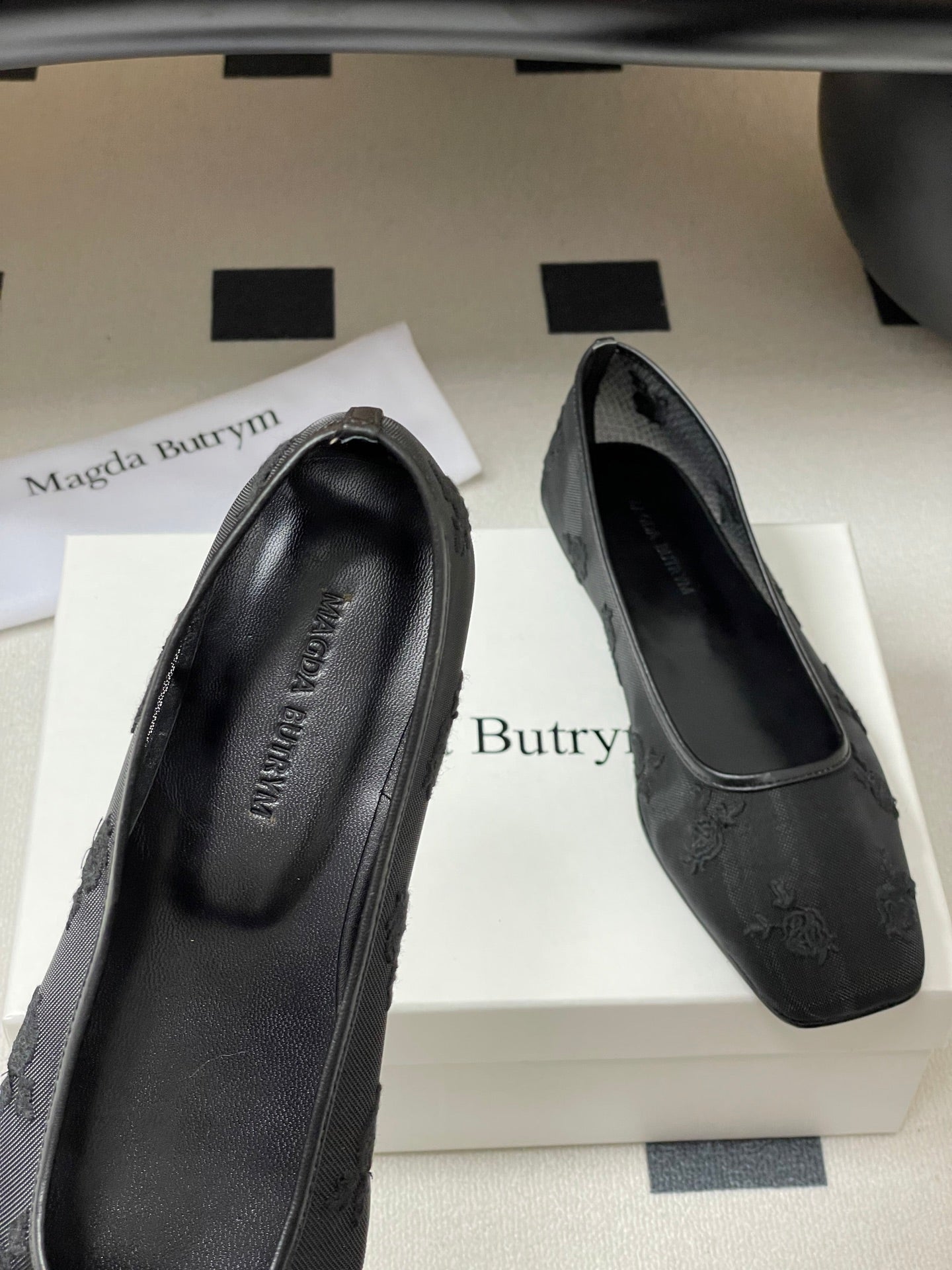 Manolo 25 Ballet Flats Black Mesh Fabric 319742