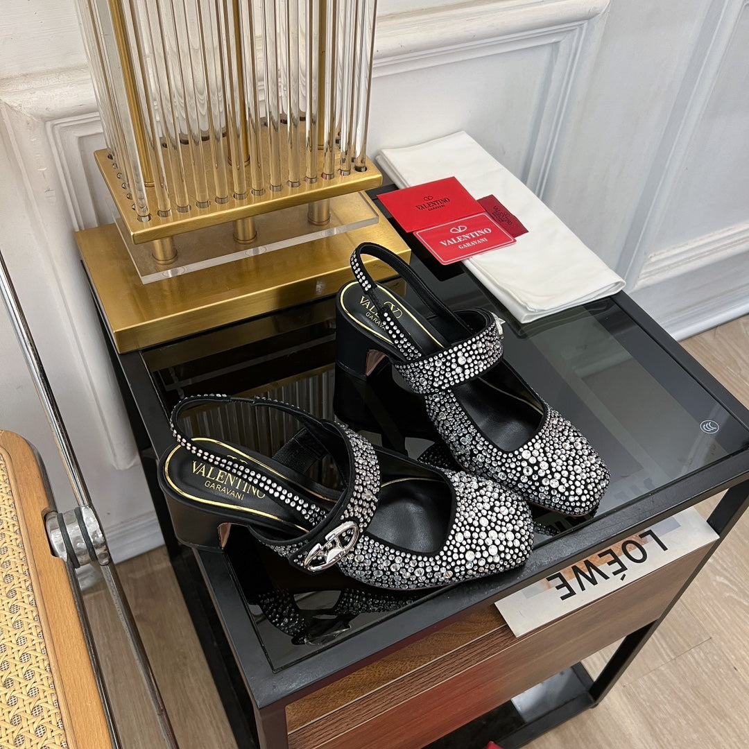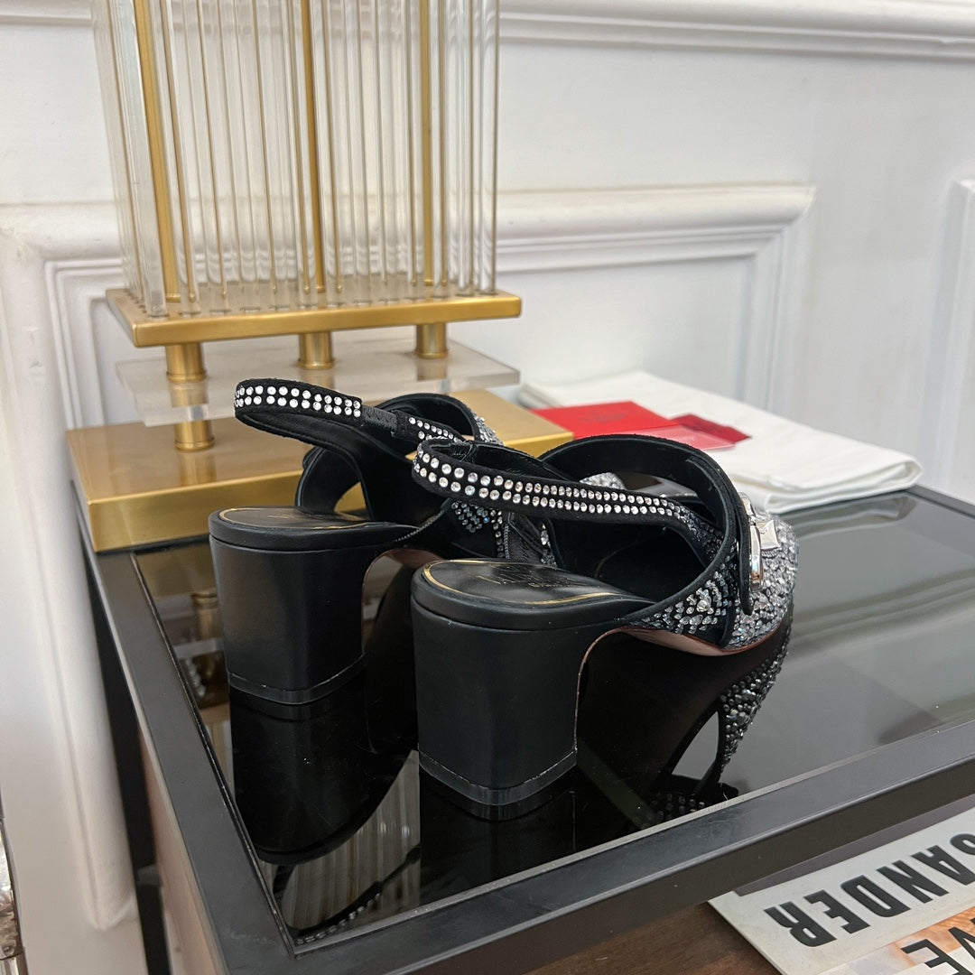 MARY-JANE VLOGO LOCKER SLINGBACK PUMPS BLACK SHEEPSKIN WITH 60MM CRYSTALS