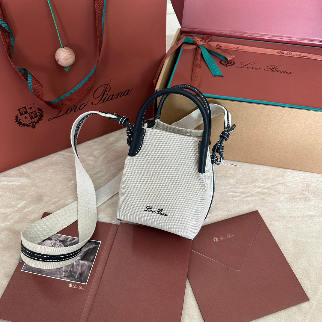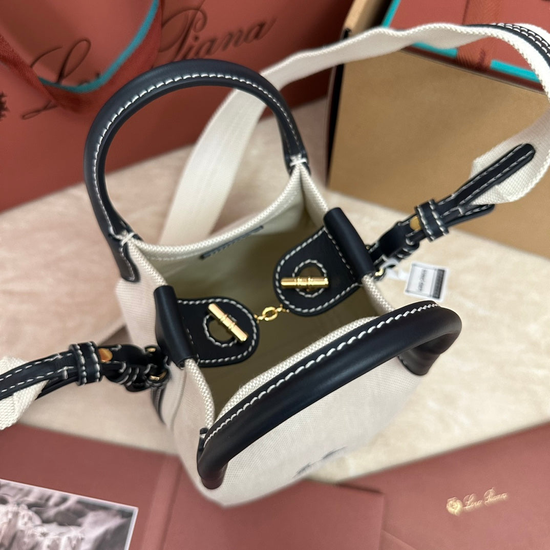 MICRO BALE BAG IN WHITE CANVAS AND BLACK CALFSKIN