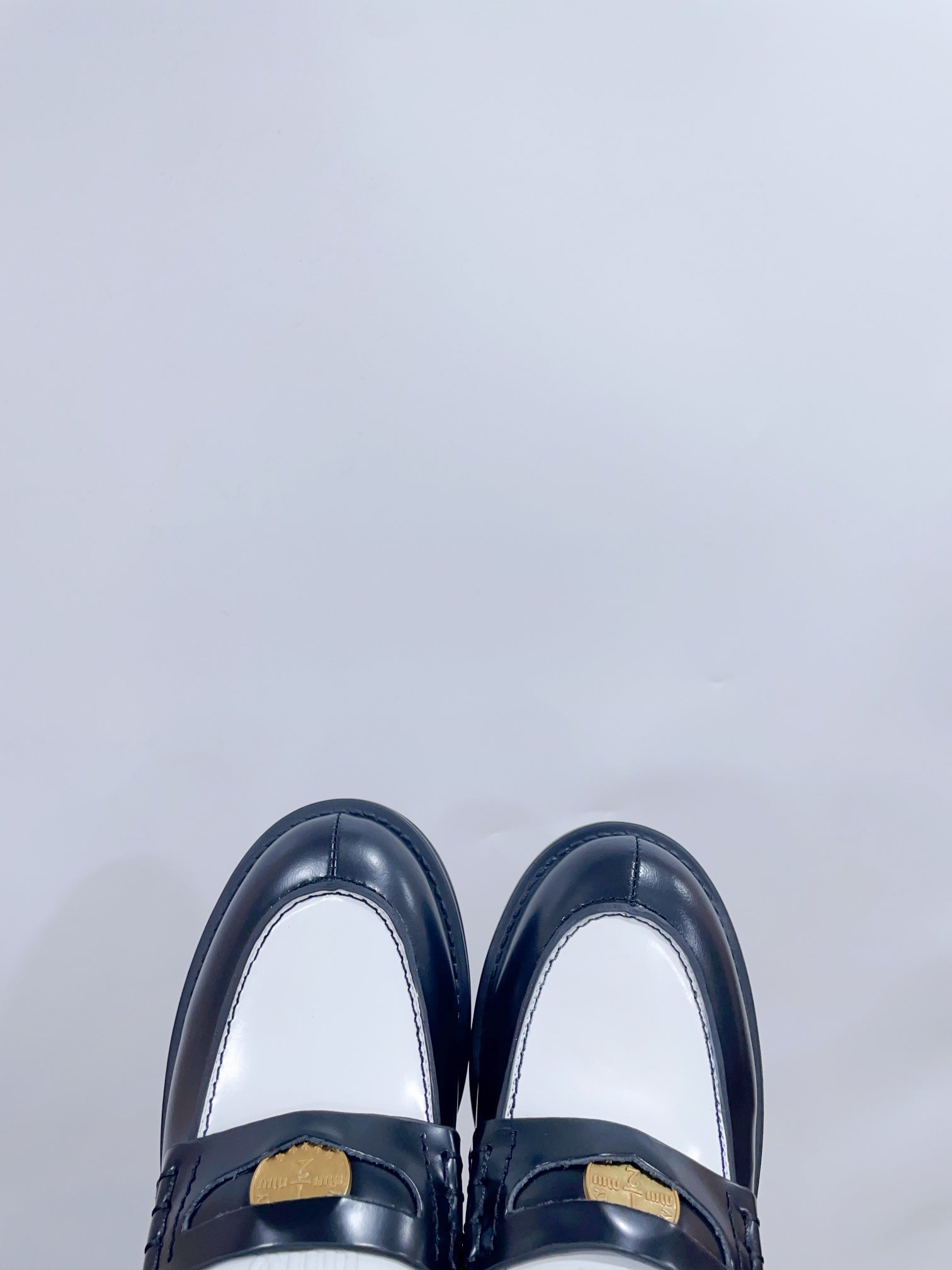 Miu Loafers Black And White cowhide