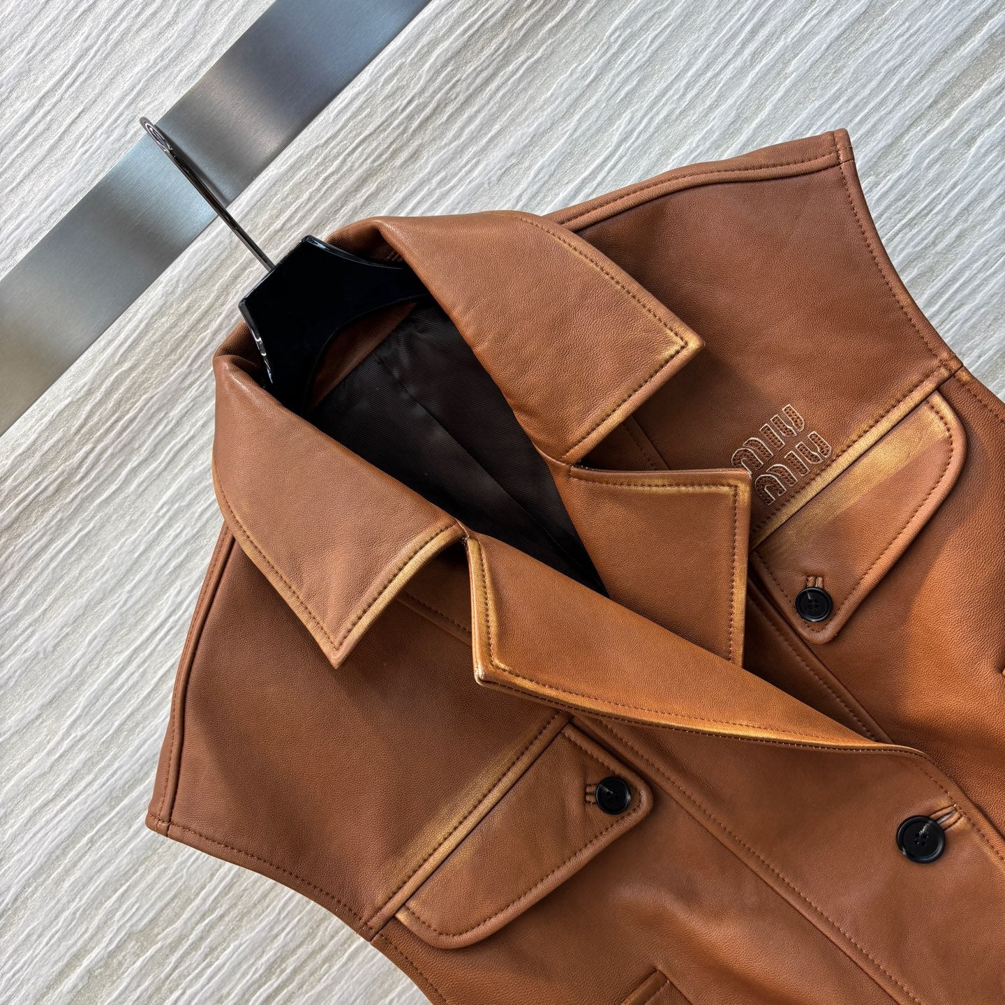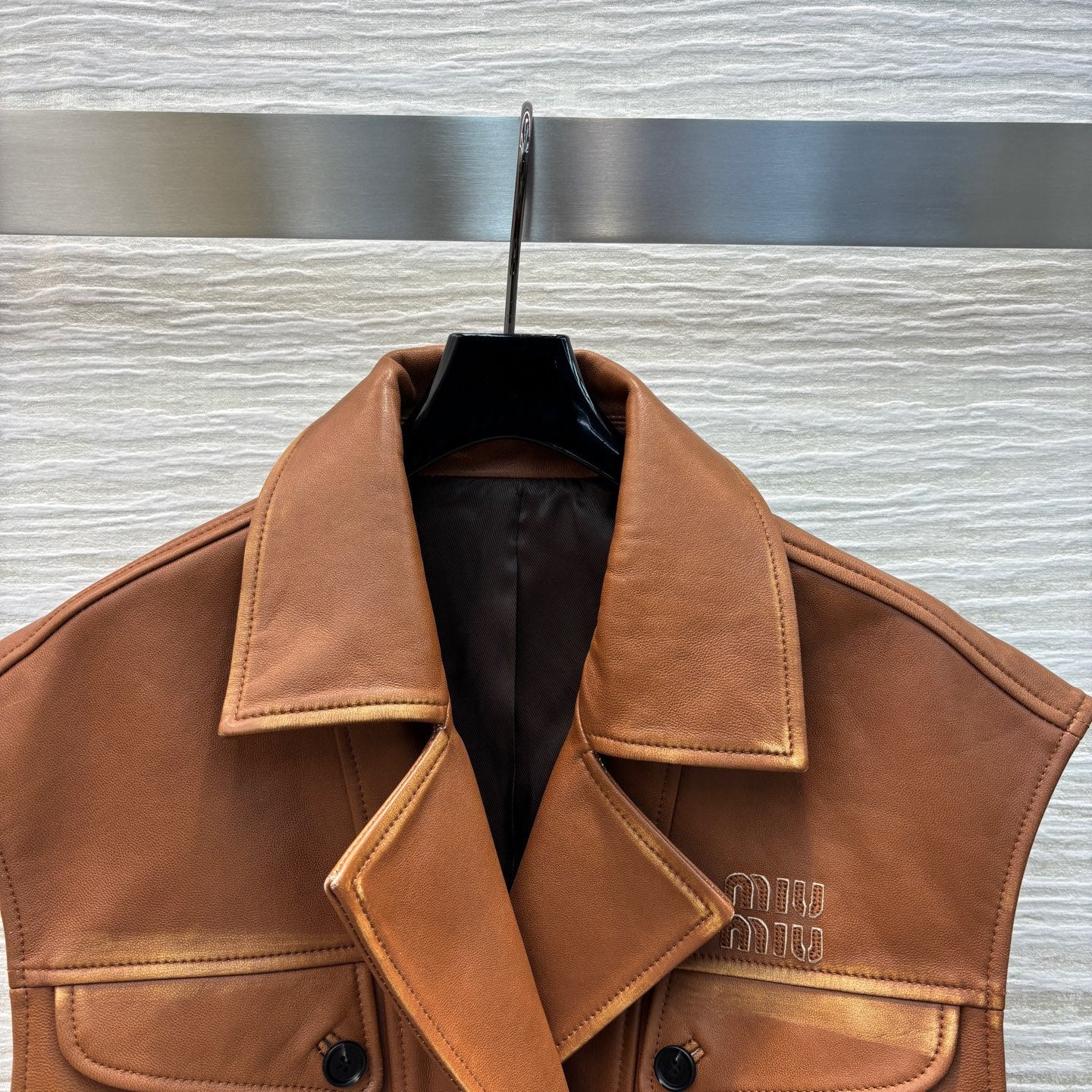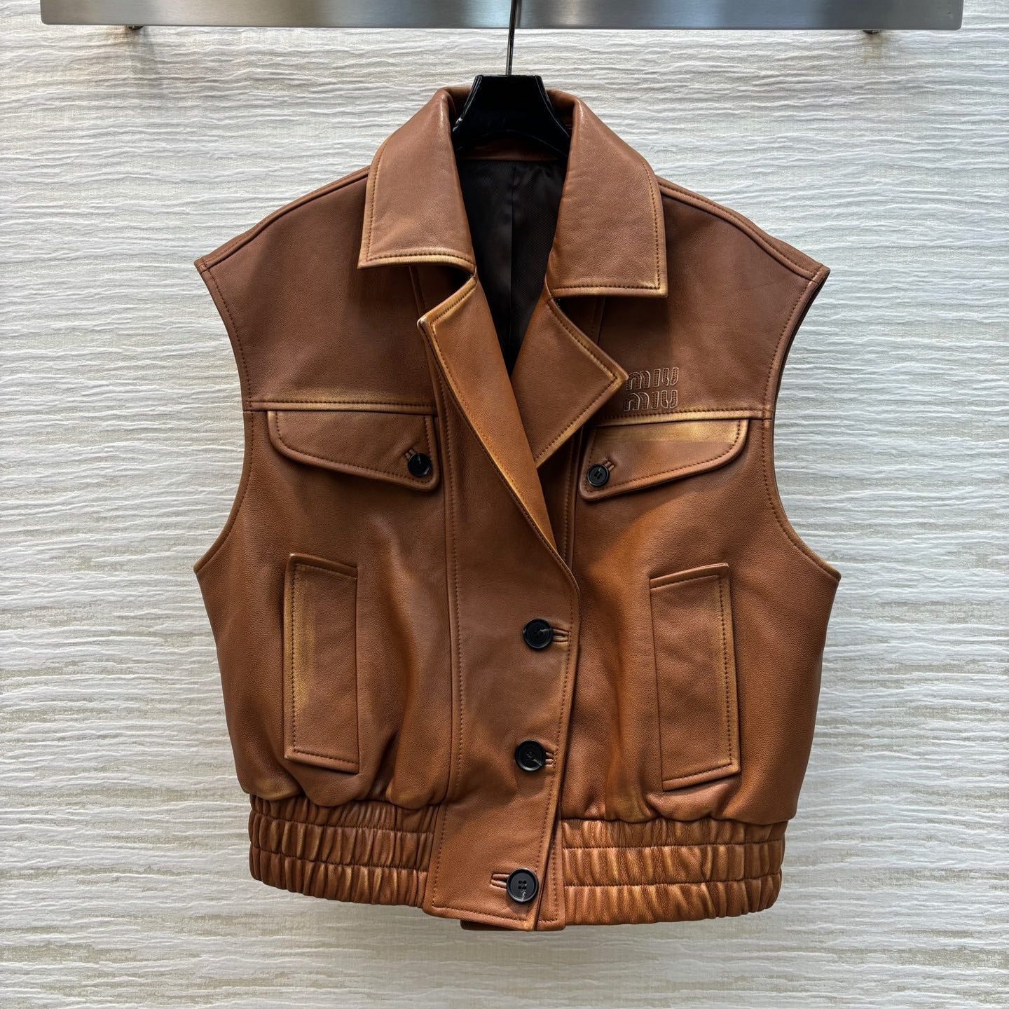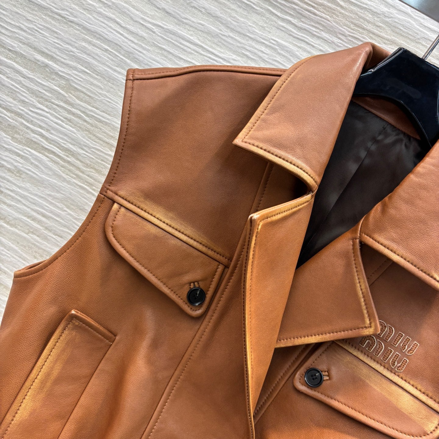 Miu Miu 25 Leather Vest Jacket Brown Lambskin