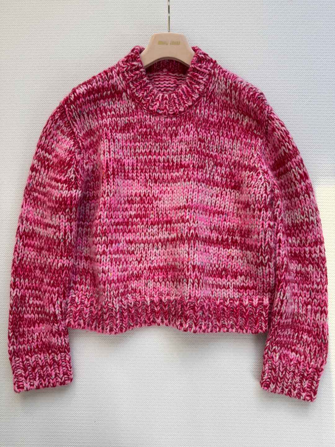 Miu Miu 25 Twisted Snowflake-colored Round-neck Sweater Pink Cashmere
