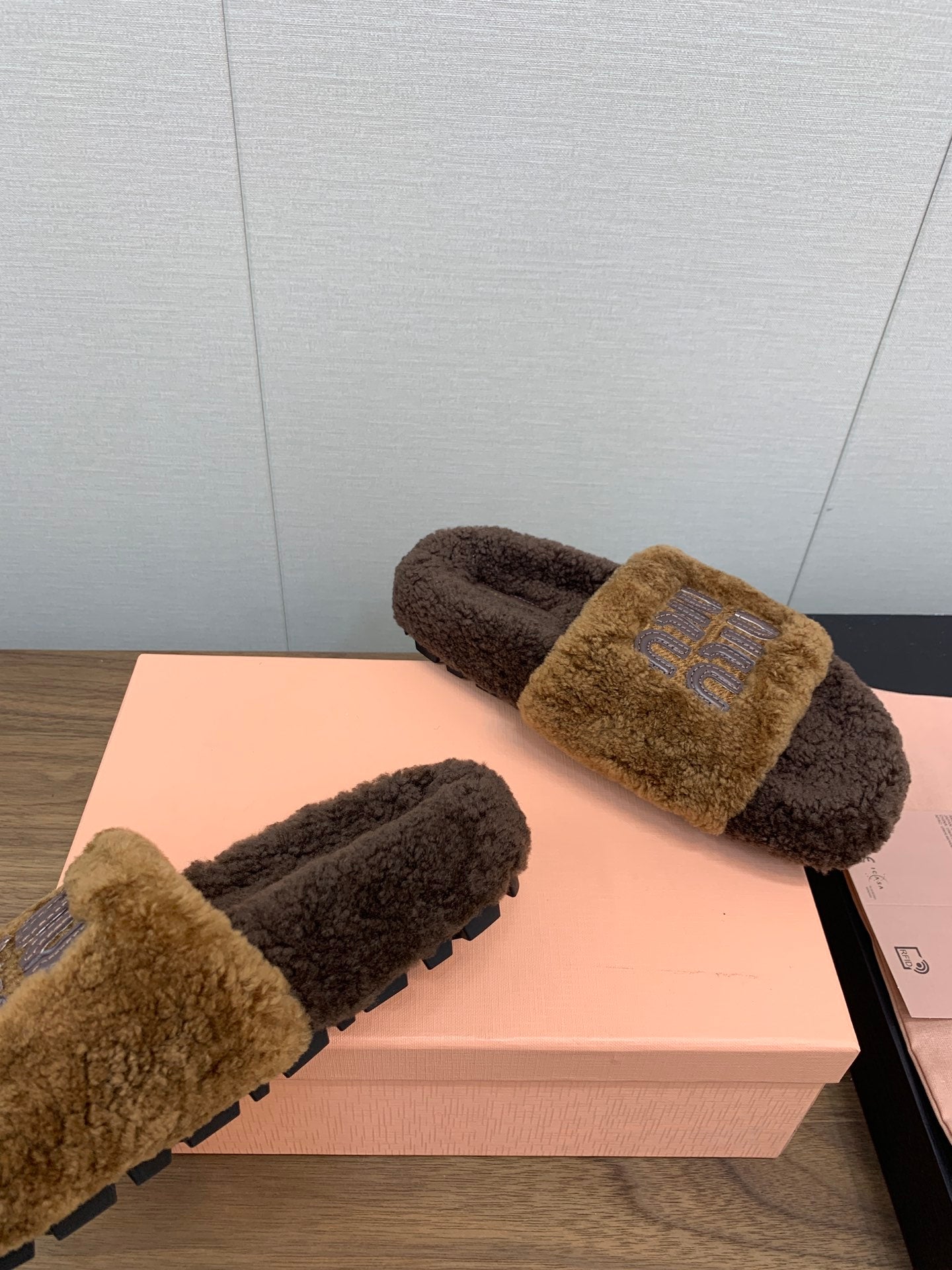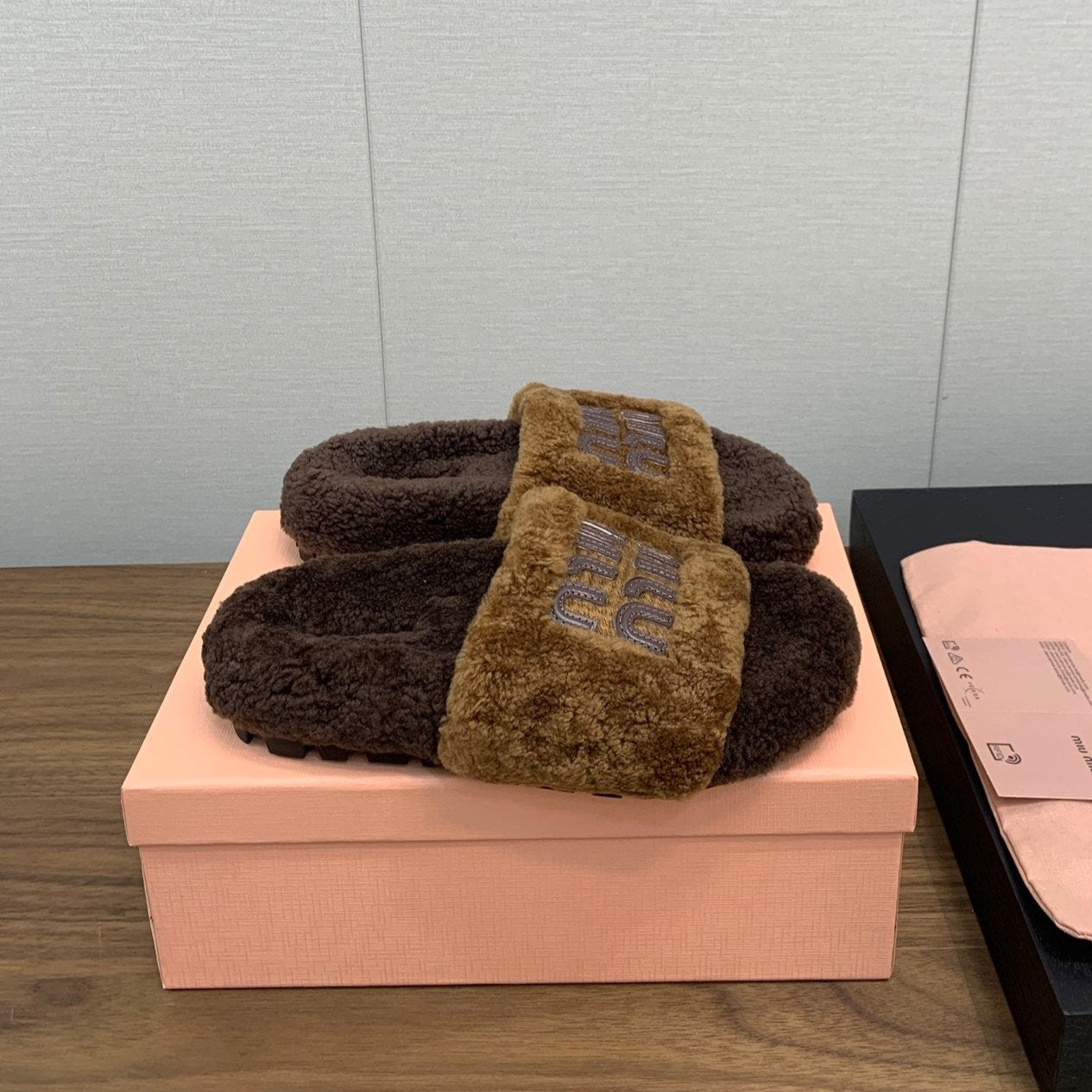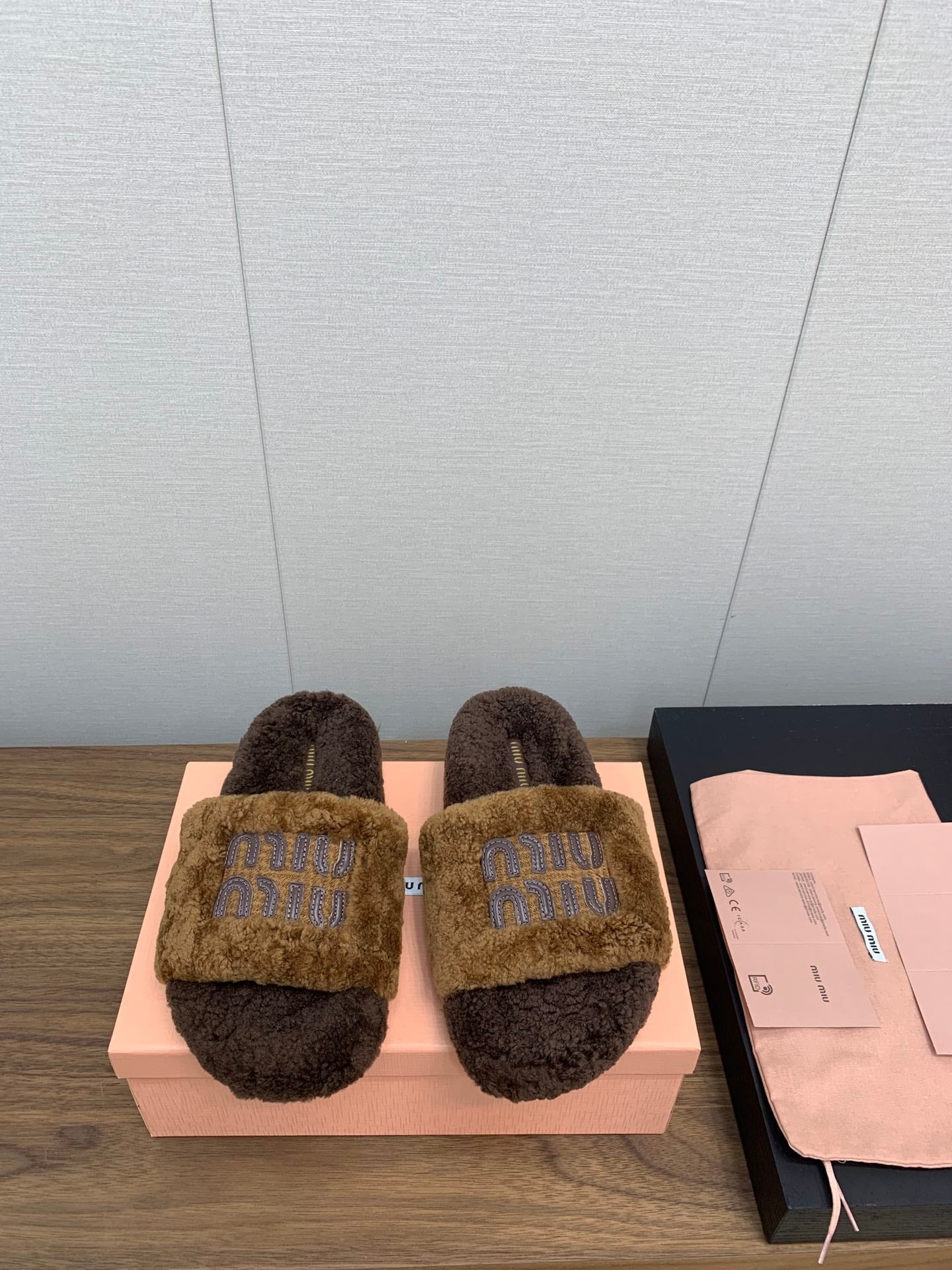 Miu Slippers Caramel Brown With Brown Lettering Pure Wool