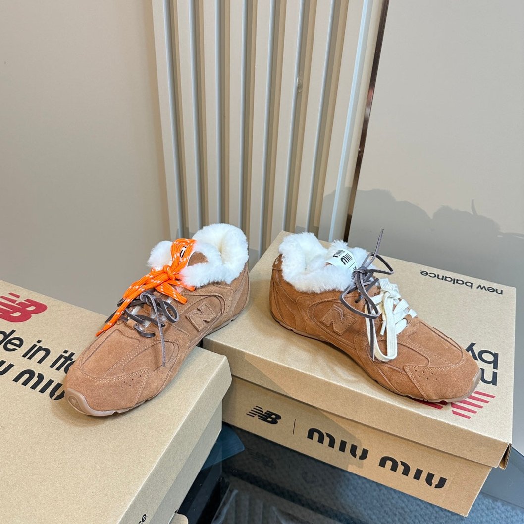 Miu x Balance 530 SL Sneakers Brown Yellow Fleece Lining Suede