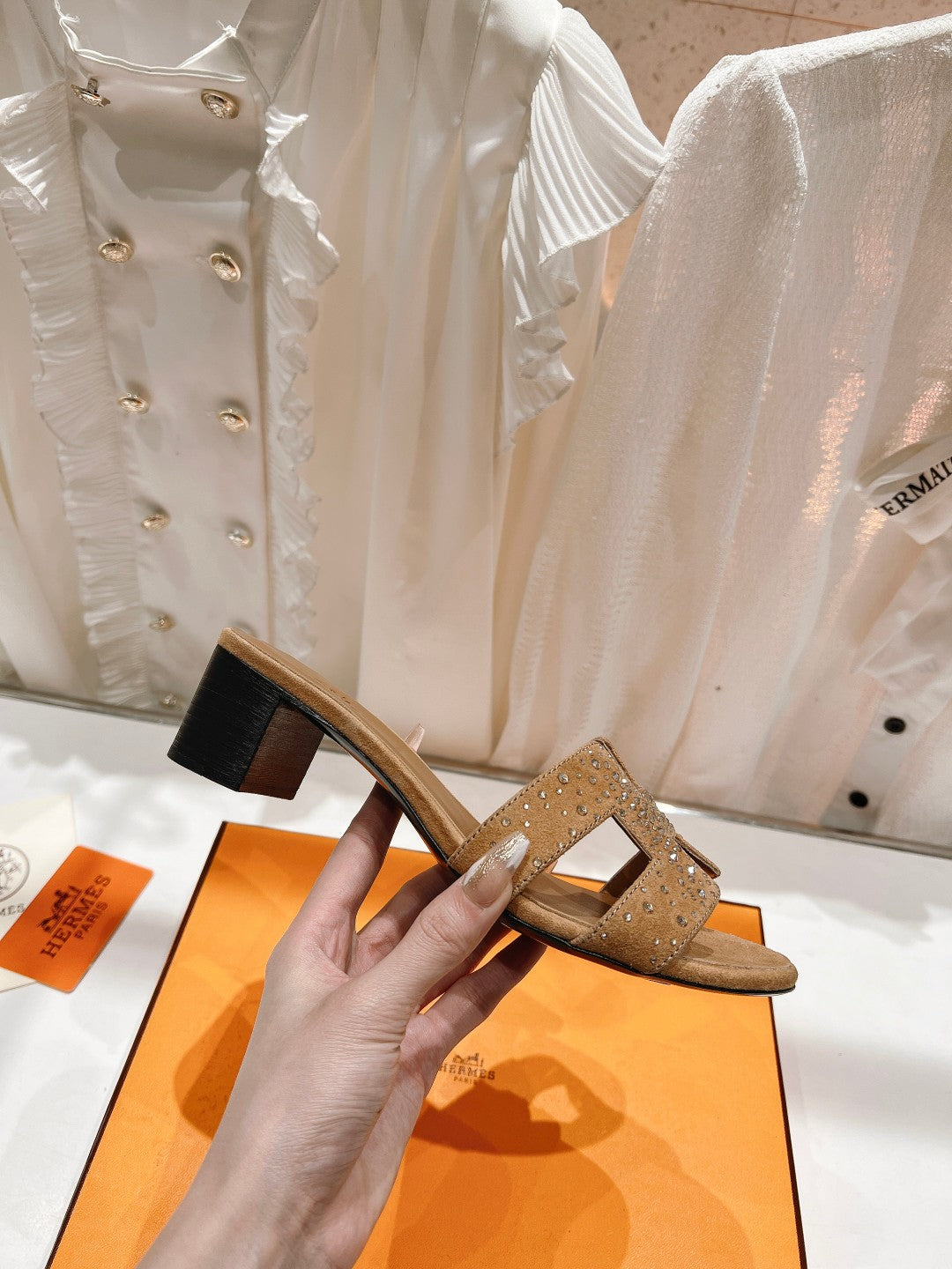 OASIS SANDALS CARAMEL LAMBSKIN ATTACH CRYSTAL