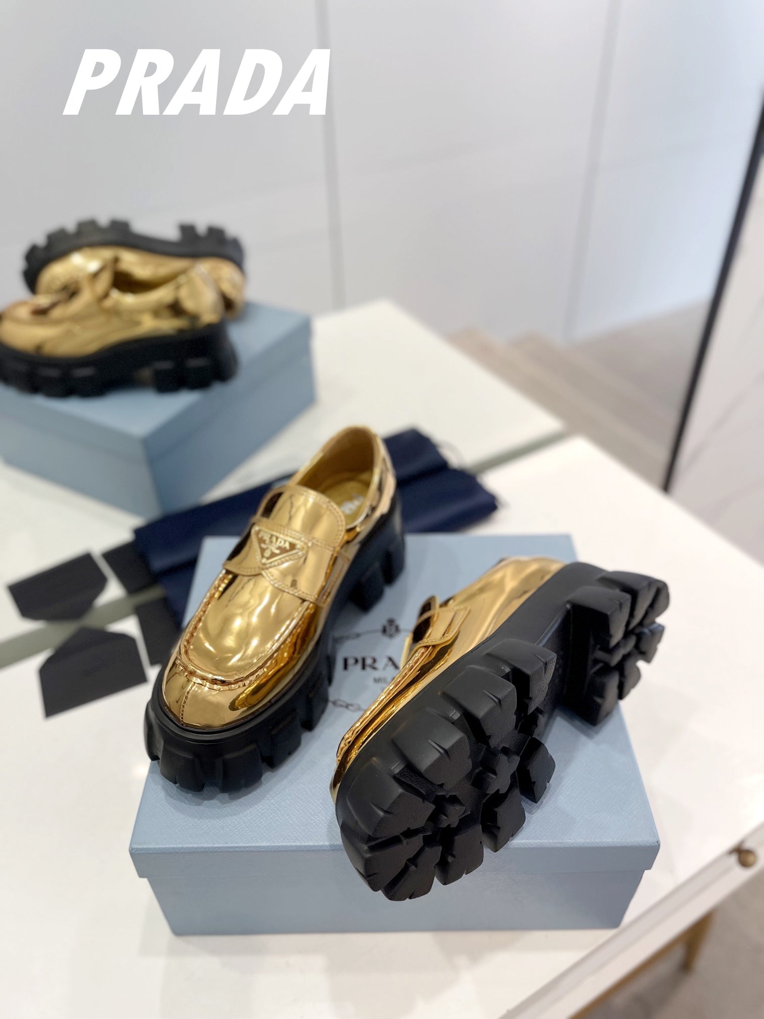 PRA BRUSHED LEATHER MONOLITH LOAFERS METALLIC GOLD